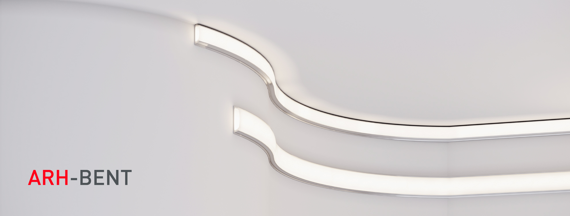Профили серии ARH BENT легко гнутся руками в поперечной плоскости, благодаря чему являются идеальным интерьерным решением для подсветки изогнутых поверхностей и создания декоративных фигурных светильников.