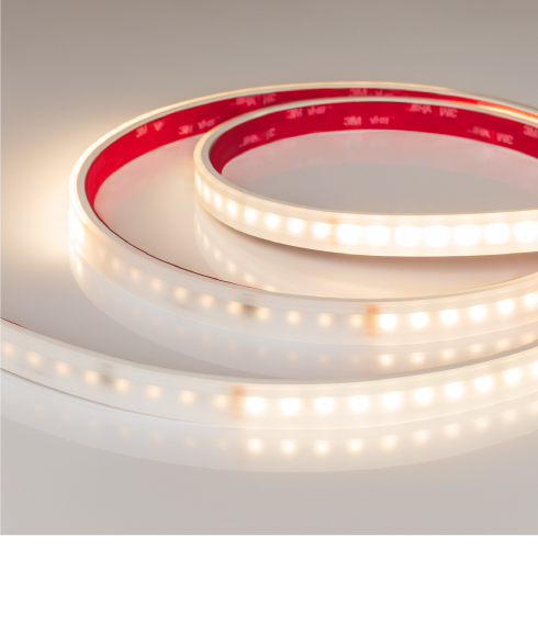 Лента представлена в стандартном ассортименте цветов свечения — 2700, 3000, 4000, 6000 К. Также они доступны в открытом варианте со степенью защиты оболочки IP20 и в герметичном — с маркировкой IP67. Второй тип ленты имеет очень высокий уровень защиты от пыли и может выдержать кратковременное погружение в воду на глубину до 1 м, что позволяет использовать ленту на улице.