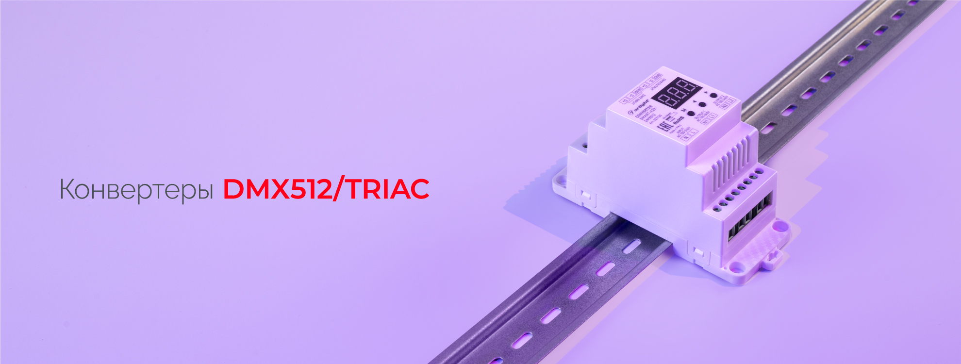 Конвертеры предназначены для управления яркостью, включением и отключением источников света с напряжением питания AC 230 В (светодиодных диммируемых ламп, диммируемых светодиодных светильников, ламп накаливания, галогенных ламп) посредством протокола управления DMX512. Диммирование выполняется с использованием метода TRIAC.
