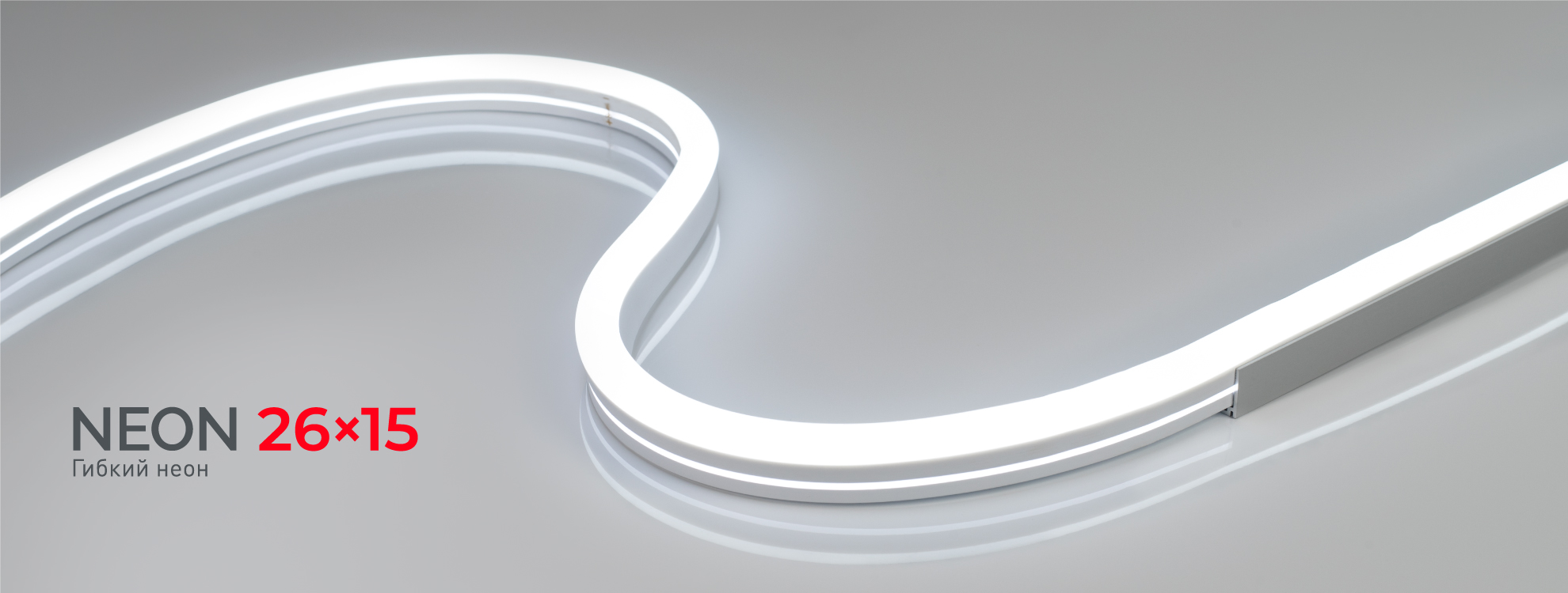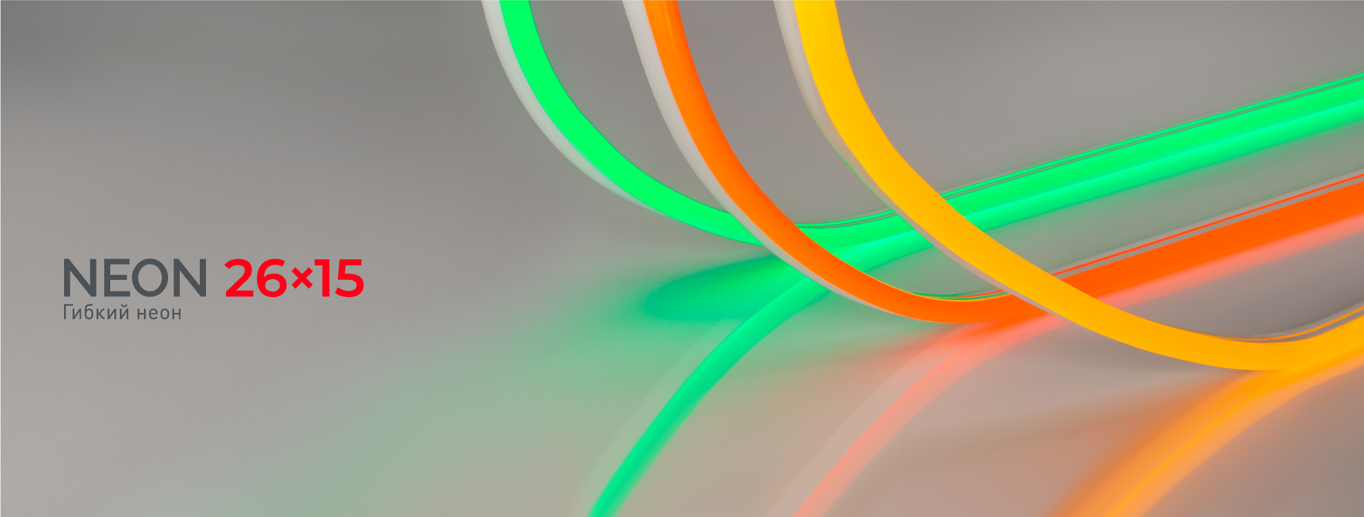 Гибкий неон NEON — отличное решение для декоративной подсветки ступеней, рекламных конструкций, а также для оформления кафе, баров, ванных и детских комнат. За счет прямоугольного сечения 26×15 мм гибкий неон легко встраивается в профиль и небольшие углубления в мебели. В серии представлены модели с напряжением питания 24 и 230 В.