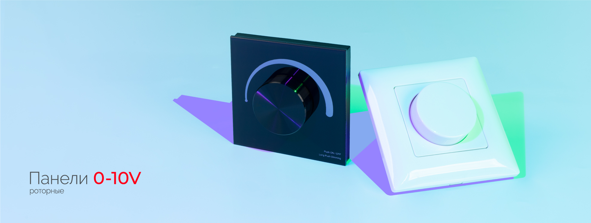 Встраиваемые роторные панели с аналоговым выходным сигналом 0/1–10 В предназначены для управления одноцветными светодиодными лентами или другими источниками света. Панели позволяют включать и выключать свет, регулировать его яркость при помощи вращающегося регулятора.