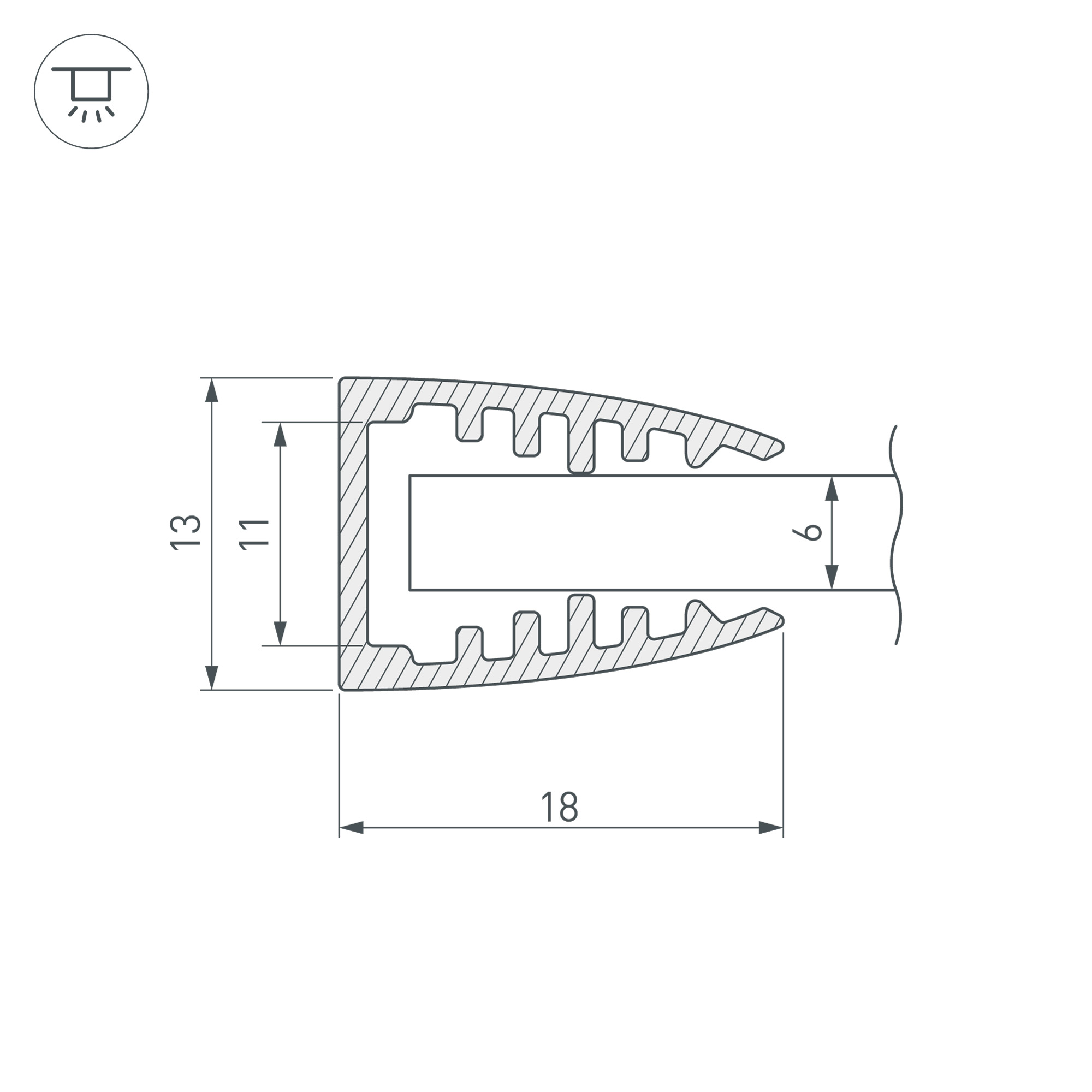 Накладной профиль из анодированного алюминия для декоративной подсветки стекла толщиной 6 мм, не является монтажным элементом, фиксируется на кромке стекла. Габаритные размеры профиля составляют 2000 мм в длину, 12,5 мм в ширину и 18 мм в высоту. Площадка для установки светодиодных лент позволяют использовать ленту шириной до 8 мм и мощностью до 14,9 Вт/м. Это обеспечивает гибкость в выборе светодиодных лент и создает потрясающие световые решения.
