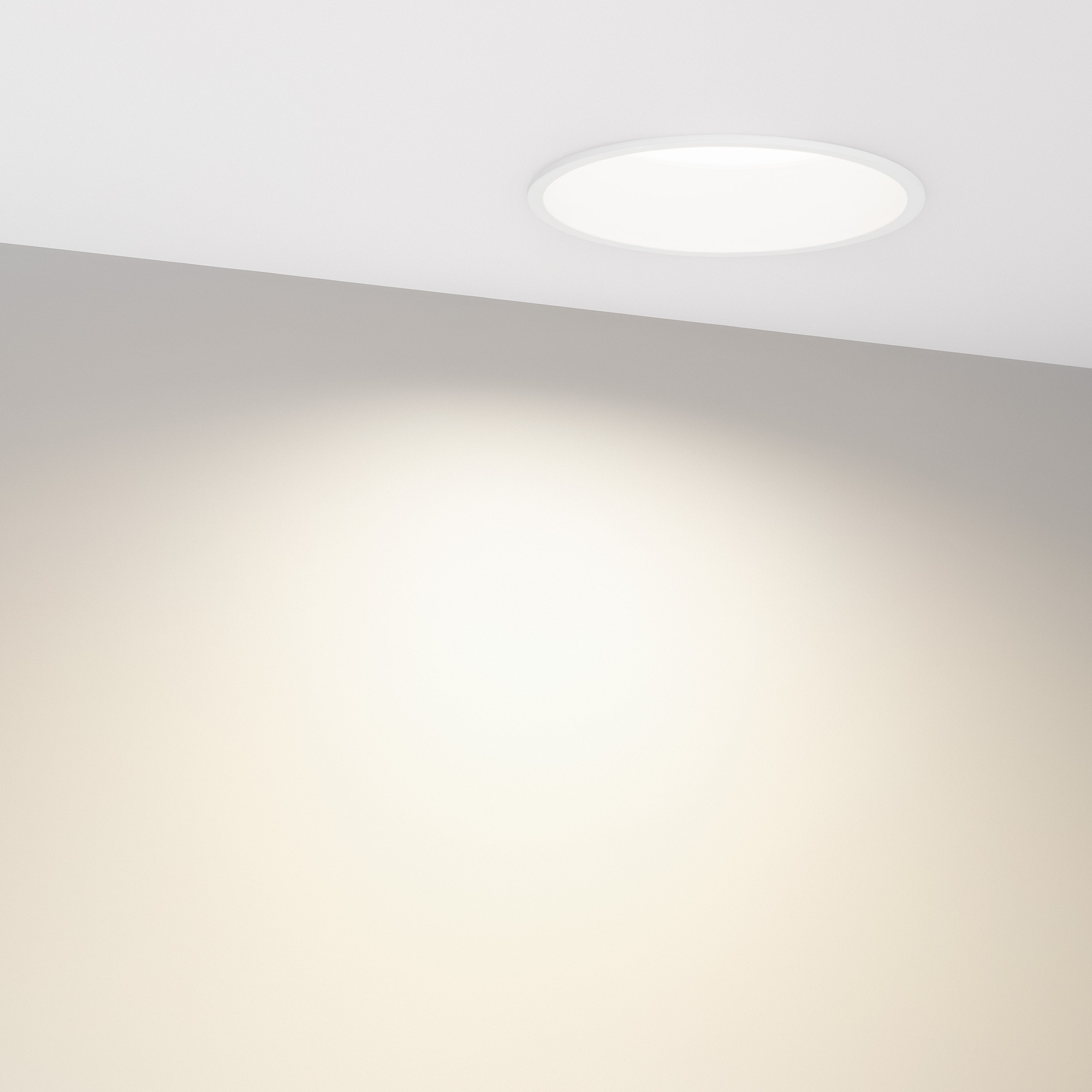 Встраиваемый круглый светильник с индексом цветопередачи CRI>90 и низкой пульсацией обеспечивает равномерное освещение без мерцания и видимости точек светодиодов с точной передачей цветовых оттенков. Алюминиевый корпус белого цвета с утопленным светодиодным модулем является интересным дизайнерским решением, создавая эффект света из ниоткуда и делая освещение комфортным для глаз. Особая конфигурация корпуса позволяет эффективно отводить тепло и продлевает срок службы светодиодов. Светильник с широким углом излучения 90 градусов и световой эффективностью 70 лм/Вт подходит для качественного основного освещения. Легко устанавливается с помощью пружин в монтажное отверстие. Драйвер поставляется в комплекте и позволяет быстро подключать светильник напрямую к сети переменного тока 230 В. Диммирование возможно при замене штатного драйвера. Степень защиты от пыли IP20 позволяет применять модель в жилых, коммерческих, торговых и других помещениях, где отсутствует контакт с водой.
