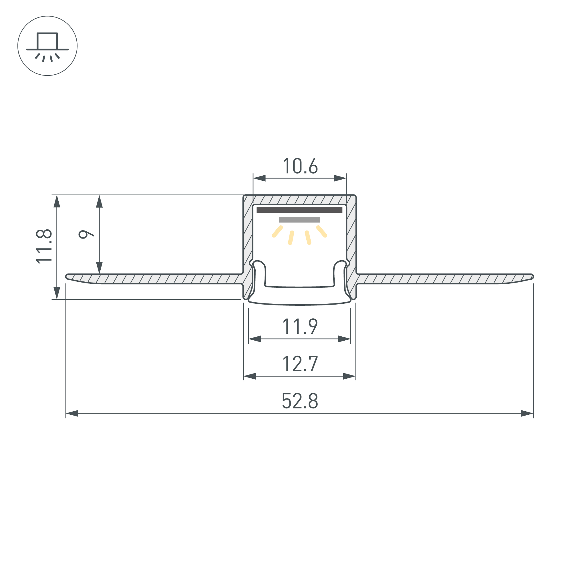 Алюминиевый встраиваемый гибкий профиль для светодиодных лент и линеек. Изгиб вверх/вниз. Габаритные размеры (L×W×H): 2000х52,8х11,8 мм. Ширина площадки для ленты 10,6 мм. Экраны, заглушки и другие аксессуары приобретаются отдельно. Цена за 1 метр.