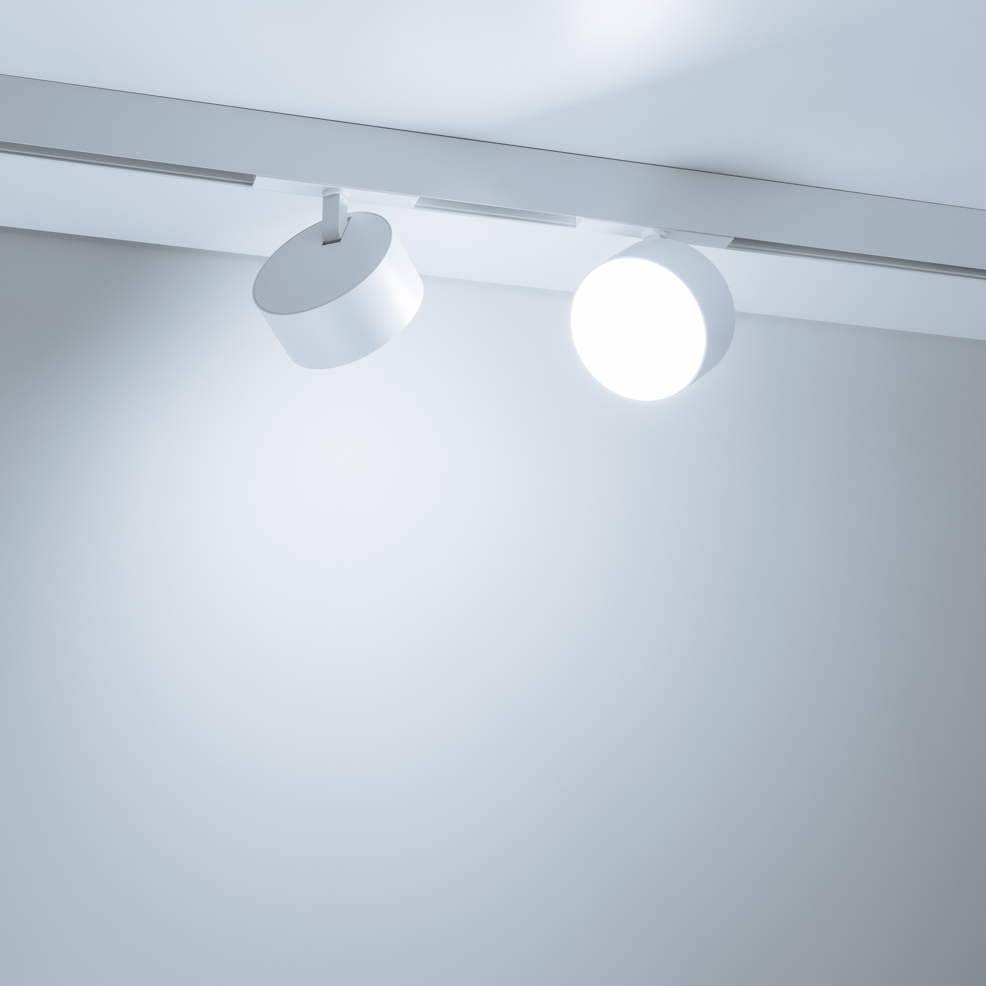 Светильник для магнитных треков MAG-ORIENT шириной 26 мм с управлением DALI и изменяемой цветовой температурой. Мощность 15 Вт, св. поток 1275 лм, 85 лм/Вт, изменяемая цветовая температура 2700-6500 K, CRI>90, угол 110°, напряжение питания 48 В. Белый круглый корпус из металла, степень защиты IP20. Размер светоизлучающего модуля: 120x56 мм. Монтаж на трек MAG-ORIENT. Пульсация <1%.