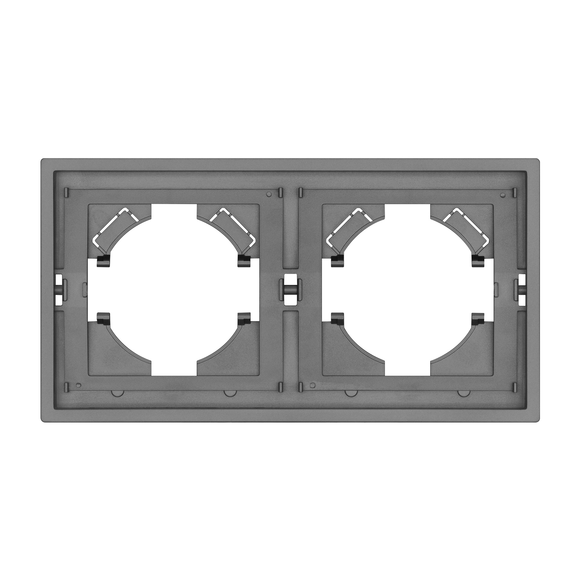 Рамка пластиковая на 2 поста, под встраиваемый механизм. Цвет - серый. Среднего уровня герметичности IP20. Ориентация монтажа горизонтальная. Габаритные размеры: длина 150 мм, ширина 80 мм, высота 9 мм. Гарантийный срок 12 мес.