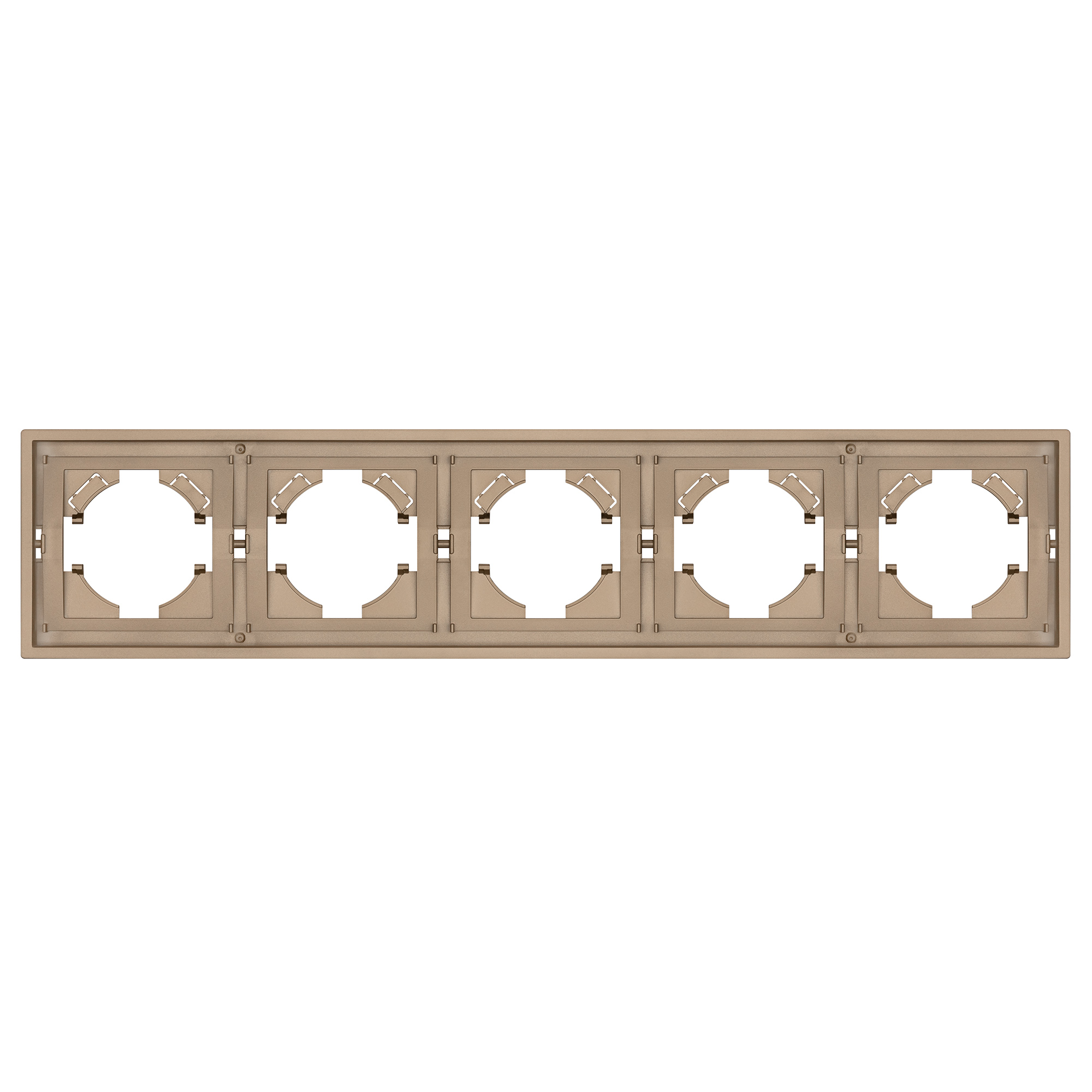 Рамка пластиковая на 5 постов, под встраиваемый механизм. Цвет - золотой. Среднего уровня герметичности IP20. Ориентация монтажа горизонтальная. Габаритные размеры: длина 364 мм, ширина 80мм, высота 9 мм. Гарантийный срок 12 мес.