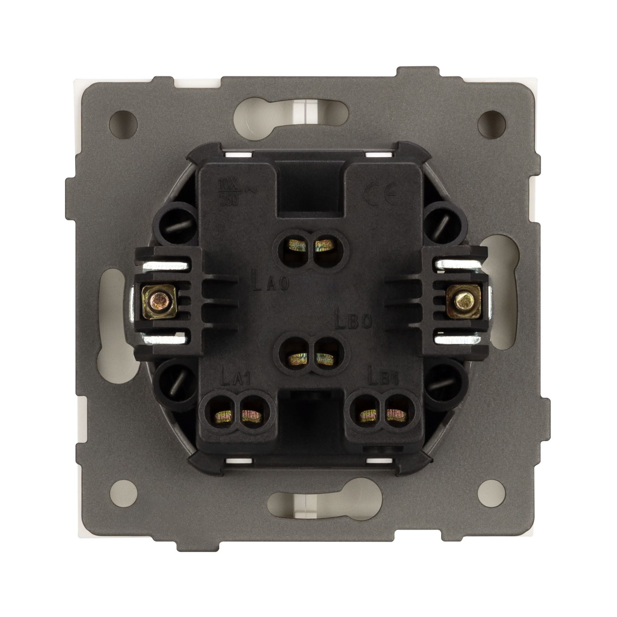 Механизм выключателя света совместим с рамками серии TENDO, создает утонченный минималистичный вид. Скрытый тип монтажа позволяет гармонично встроить в интерьер любого современного дизайн-проекта. Видимая часть механизма выполнена из высококачественного пластика белого цвета и имеет матовое покрытие. Контактная часть присоединяется при помощи винтовых зажимов, позволяя надежно подсоединить механизм выключателя к питающим элементам. А усиленные распорные лапки двойного захвата надежно фиксируют механизм в установочном подрозетнике круглого сечения диаметром 60мм. Суппорт окрашен порошковой краской и выполнен из металла толщиной 1,5мм, что обеспечивает безопасность и уверенность в установке. На каждой стороне суппорта размещены фиксирующие элементы, позволяющие комбинировать механизмы в системы до 5 шт как горизонтально, так и вертикально.