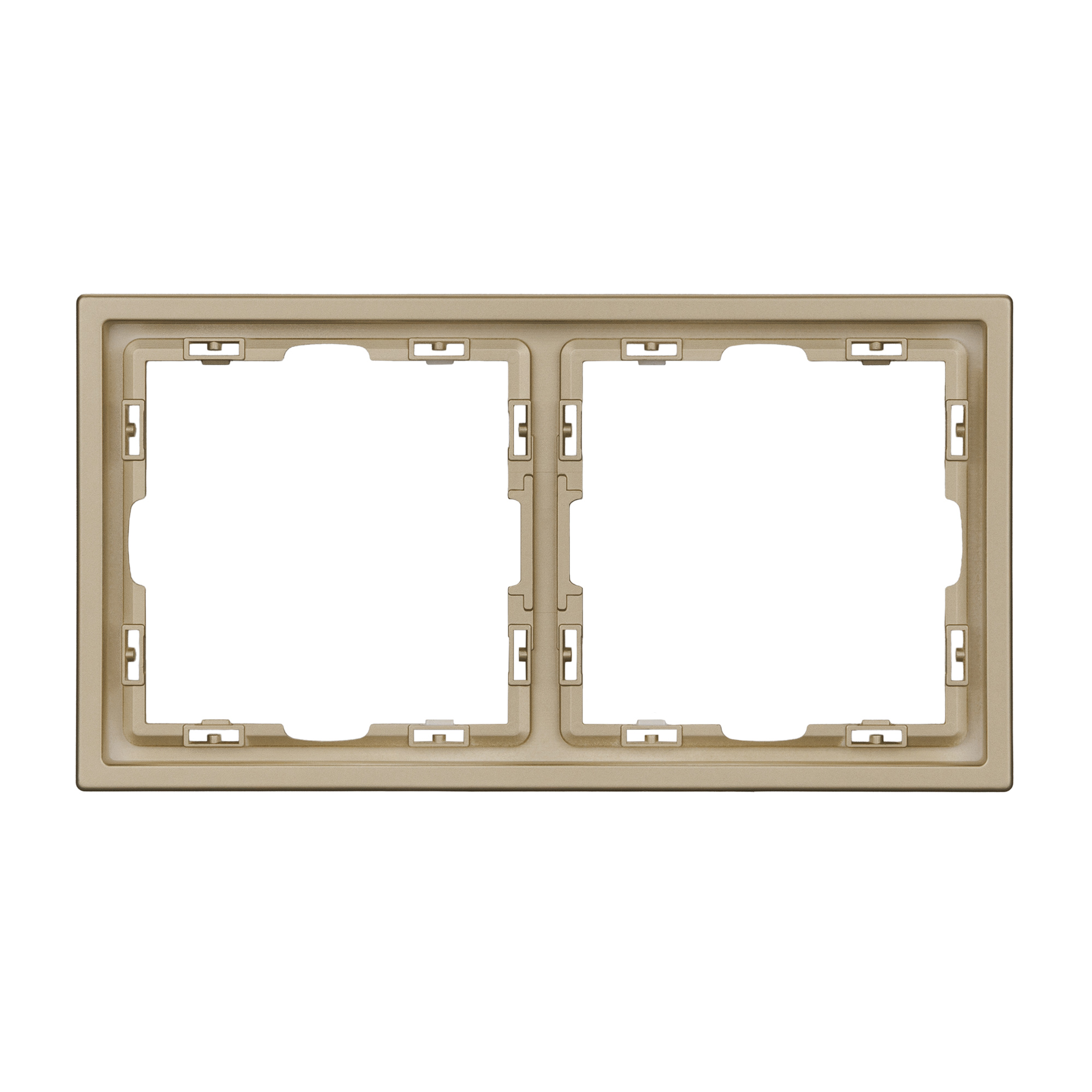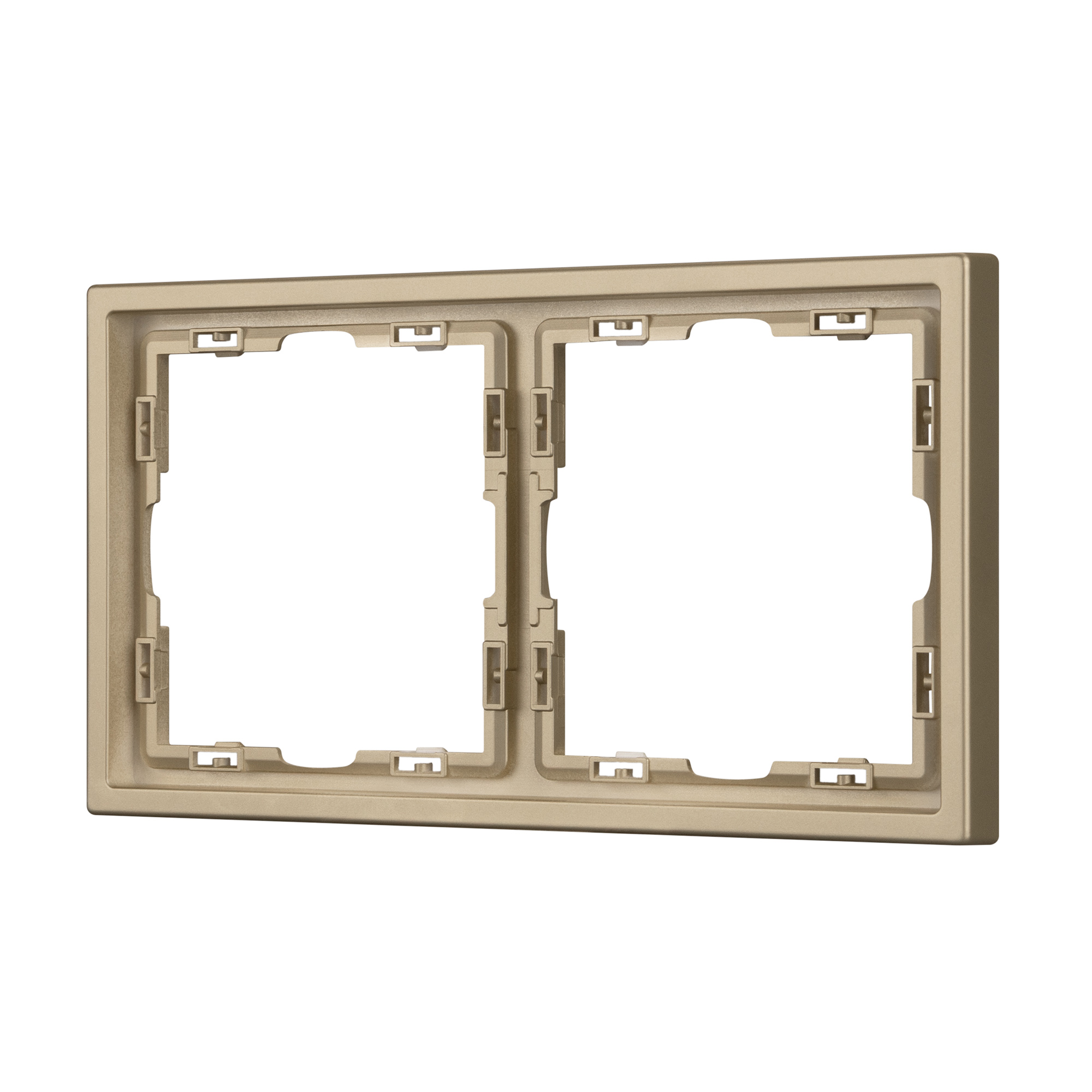 Рамка пластиковая на 2 поста, под встраиваемый механизм. Цвет - золотой, с Soft-Touch покрытием. Среднего уровня герметичности IP20. Ориентация монтажа горизонтальная. Габаритные размеры: длина 152 мм, ширина 81 мм, высота 8,55 мм. Гарантийный срок 12 мес.