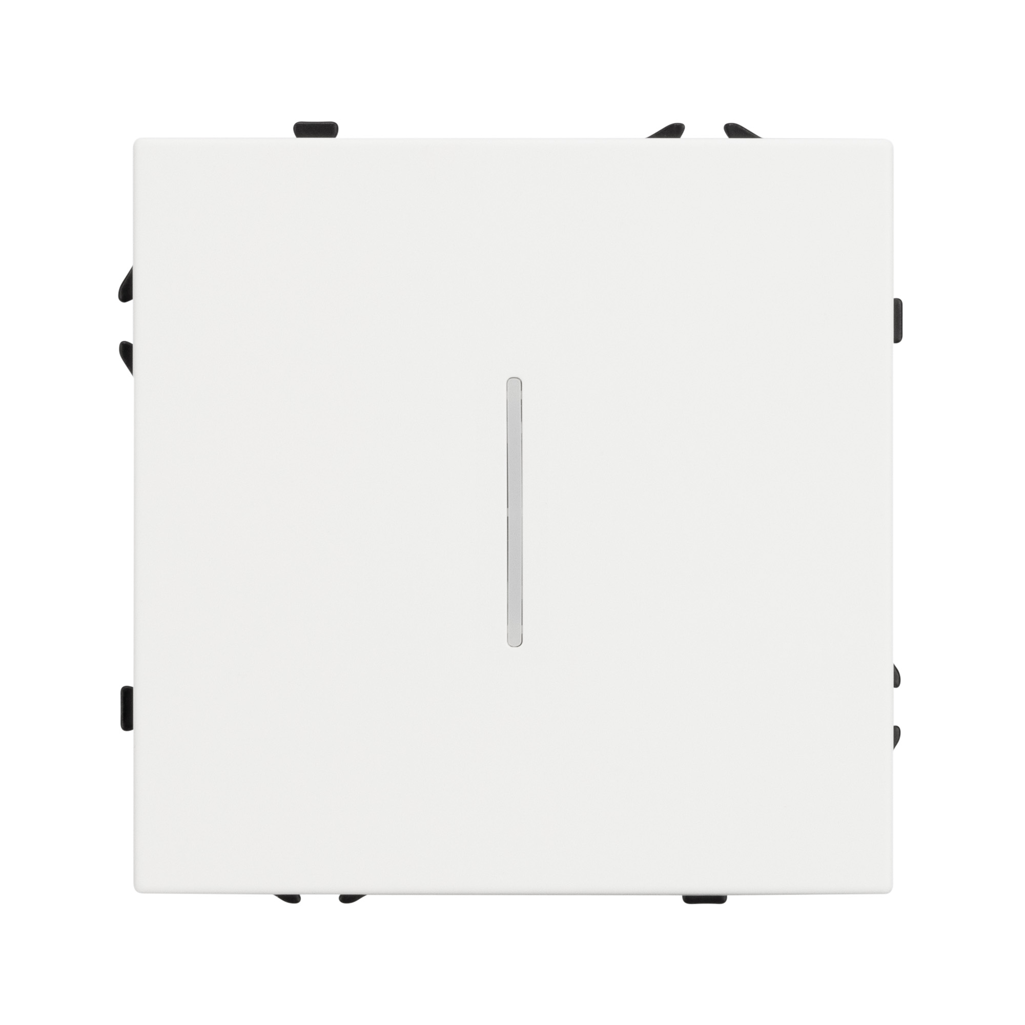 Механизм выключателя света клавишный на 1 пост 1 клавиша (проходной). Цвет - белый, с Soft-Touch покрытием. Клавиша имеют активную LED подсветку - cинего свечения. Без фронтальной рамки. Уровень пылевлагозащиты IP20. Выключатель устанавливается в стандартный круглый подрозетник круглого сечения диаметром 60мм. Габаритные размеры: длина 71 мм, ширина 71 мм, высота 52 мм. Гарантийный срок 10 лет.