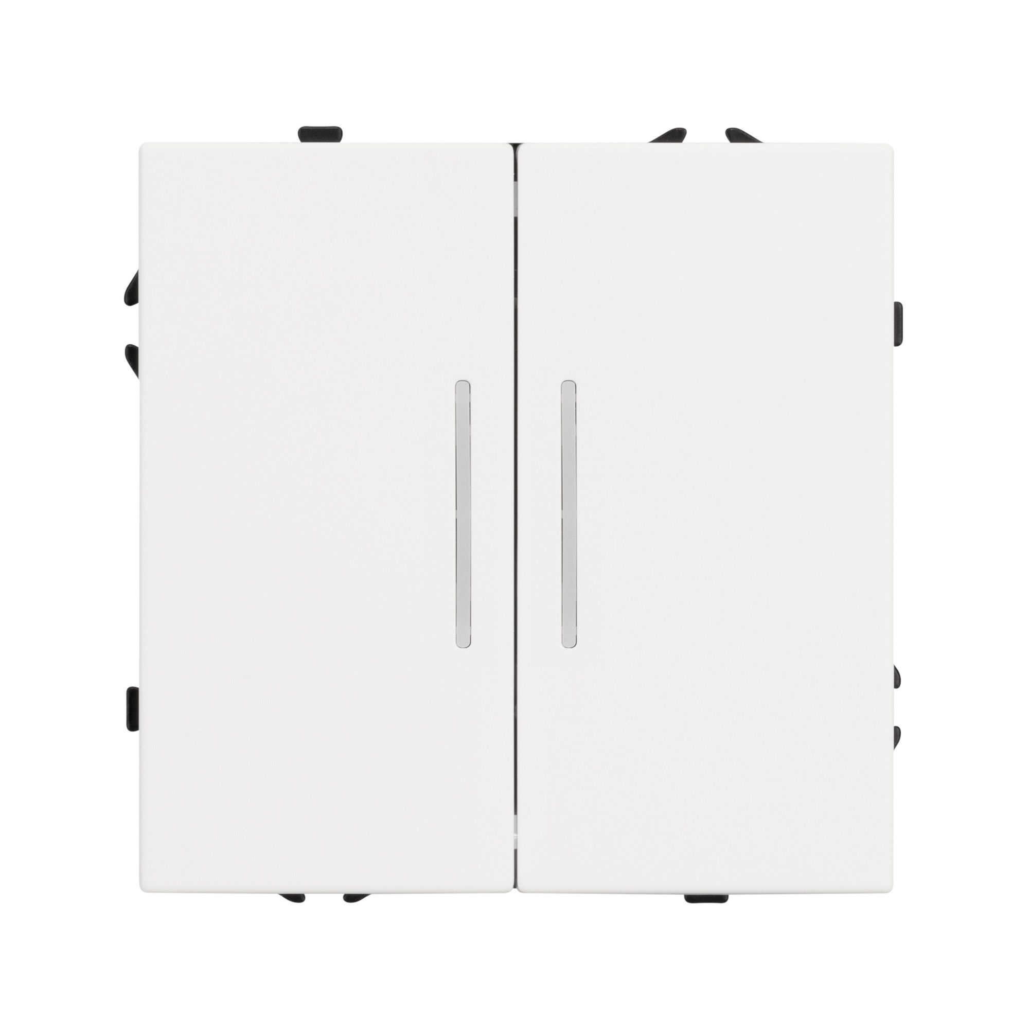 Механизм выключателя света клавишный на 1 пост 2 клавиши (проходной). Цвет - белый, с Soft-Touch покрытием. Клавиша имеют активную LED подсветку - cинего свечения. Без фронтальной рамки. Уровень пылевлагозащиты IP20. Выключатель устанавливается в стандартный круглый подрозетник круглого сечения диаметром 60мм. Габаритные размеры: длина 71 мм, ширина 71 мм, высота 52 мм. Гарантийный срок 10 лет.
