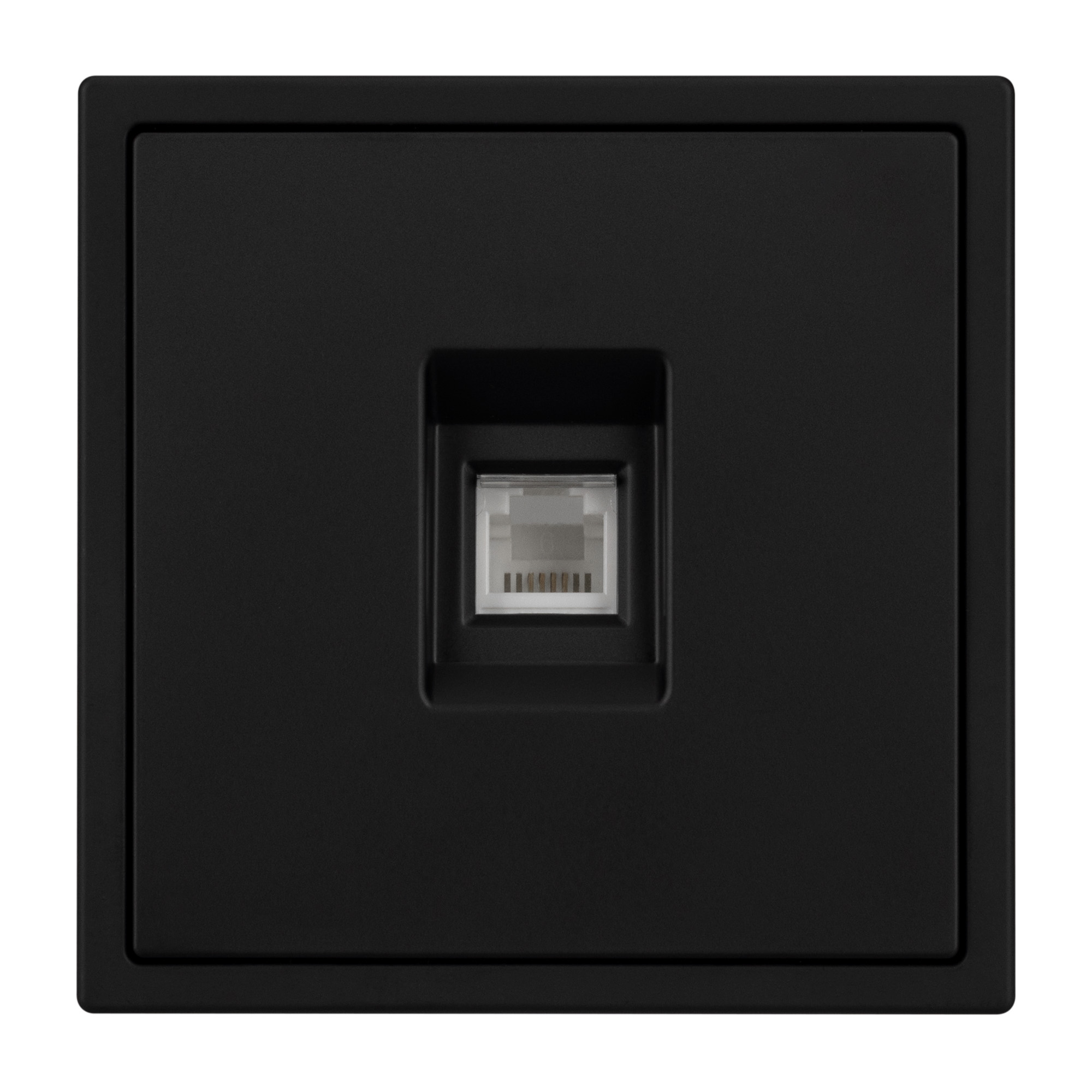 Строгие геометрические линии гармонично сочетаются с функциональностью продуманных механизмов, создавая идеальное решение для дизайн-проектов, где важны как эстетика, так и практичность. Механизм телефонной розетки совместим с рамками серии NOBE, создает утонченный минималистичный вид. Скрытый тип монтажа позволяет гармонично встроить в интерьер любого современного дизайн-проекта. Видимая часть механизма выполнена из высококачественного пластика цвета черный оникс и имеет Soft-Touch покрытие, что придает изделию приятные тактильные ощущения и стильный внешний вид. Выходной порт RJ-11 (Female) формата 6P4C соответствует категории 3 (Cat.3). Самозакрывающаяся крышка защищает выходной порт от повреждения и загрязнения внешних контактов разъема. Контактная часть выполнена по технологии IPC (изоляционно–пробивающего контакта) с нанесением цветной маркировки схемы разводки на корпус, позволяя быстро и легко подсоединить механизм компьютерной розетки к большинству многожильных кабелей типа UTP (неэкранированные). А усиленные распорные лапки двойного захвата надежно фиксируют механизм в установочном подрозетнике круглого сечения диаметром 60мм. Суппорт окрашен в черный матовый цвет под основу механизма и выполнен из металла толщиной 1,5мм, что обеспечивает безопасность и уверенность в установке. На каждой стороне суппорта размещены фиксирующие элементы, позволяющие комбинировать механизмы в системы до 5шт как горизонтально, так и вертикально.