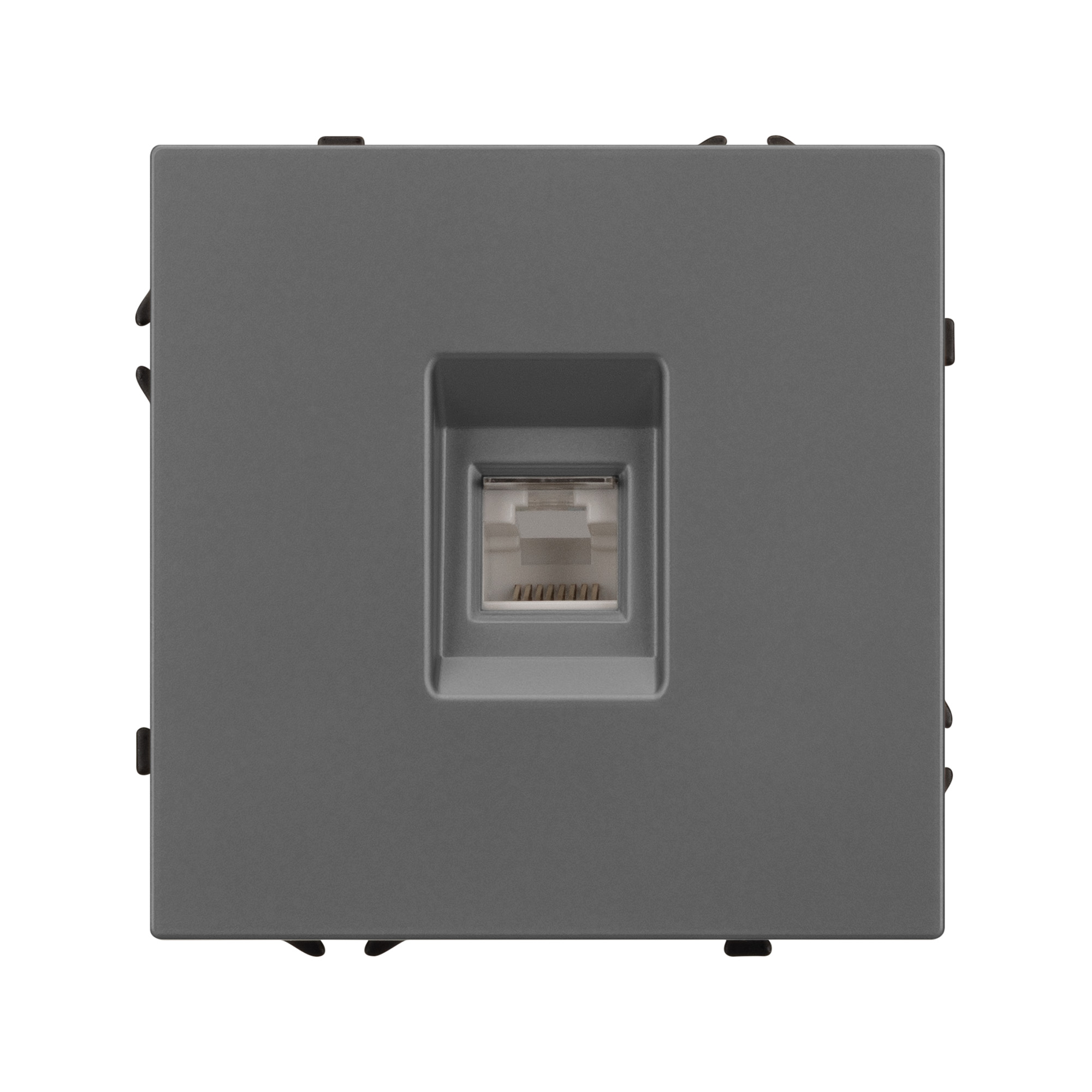 Механизм компьютерной розетки на 1 пост 6-й категории. Цвет - серый, с Soft-Touch покрытием. Без фронтальной рамки. Уровень пылевлагозащиты IP20. Тип подключаемого разъема - RJ45. Розетка устанавливается в стандартный подрозетник круглого сечения диаметром 60мм. Габаритные размеры: длина 71 мм, ширина 71 мм, высота 42 мм. Гарантийный срок 10 лет.