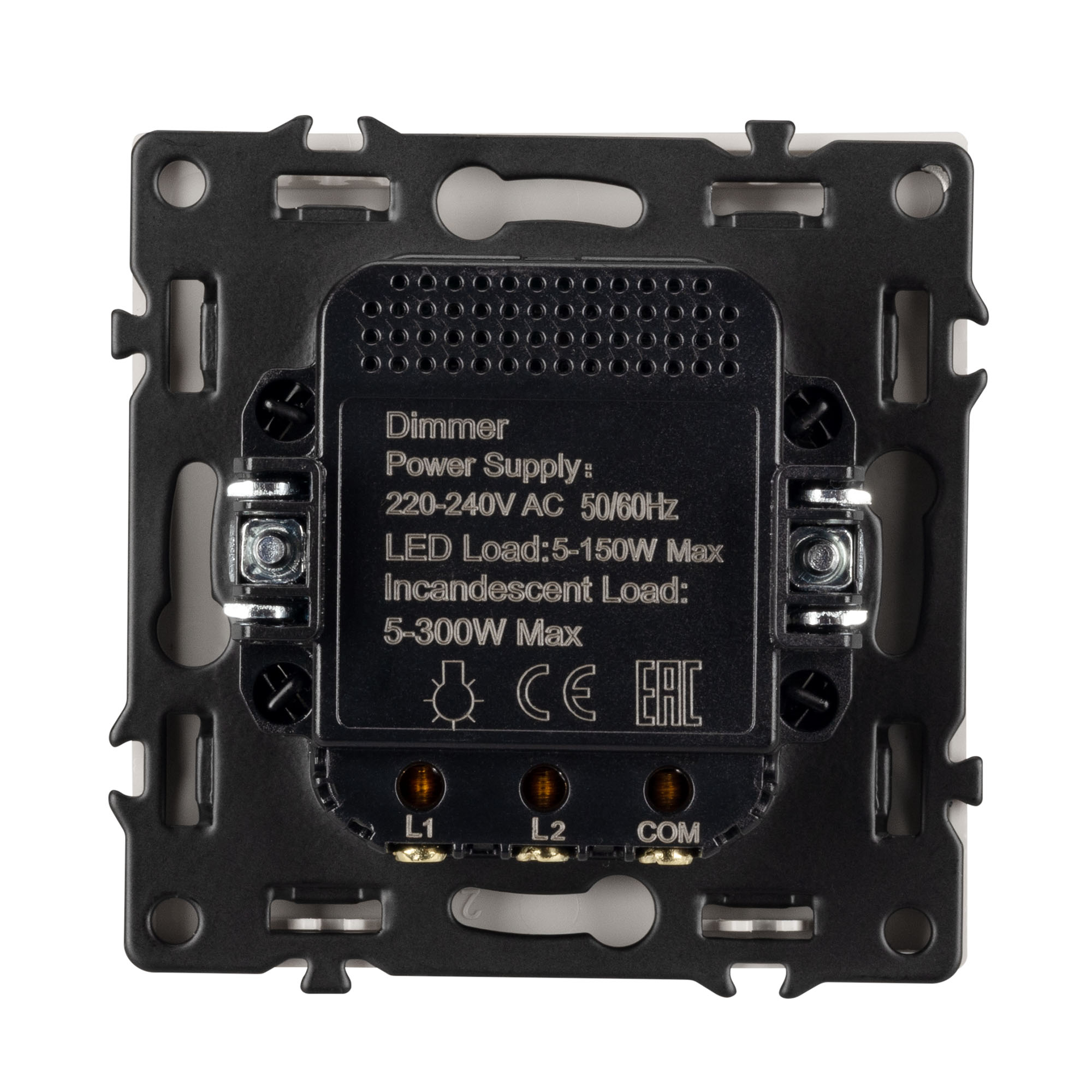 Механизм светорегулятора на 1 пост. Цвет - белый кварц, с Soft-Touch покрытием. Без фронтальной рамки. Уровень пылевлагозащиты IP20. Устанавливается в стандартный подрозетник круглого сечения диаметром 60мм. Максимальная выходная мощность 300Вт. Габаритные размеры: длина 71 мм, ширина 71 мм, высота 55 мм. Гарантийный срок 10 лет.