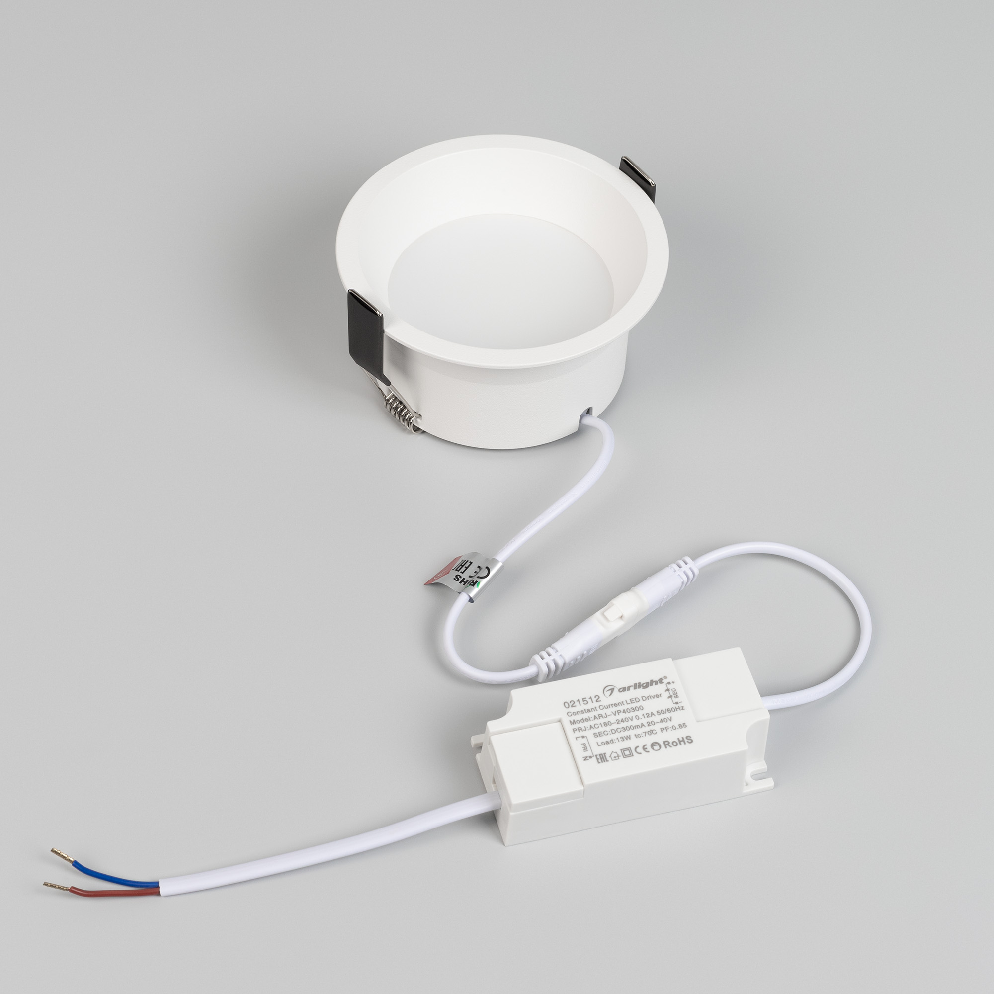 Встраиваемый круглый светильник с индексом цветопередачи CRI>90 и низкой пульсацией обеспечивает равномерное освещение без мерцания и видимости точек светодиодов с точной передачей цветовых оттенков. Алюминиевый корпус белого цвета с утопленным светодиодным модулем является интересным дизайнерским решением, создавая эффект света из ниоткуда и делая освещение комфортным для глаз. Особая конфигурация корпуса позволяет эффективно отводить тепло и продлевает срок службы светодиодов. Светильник с широким углом излучения 90 градусов и световой эффективностью 70 лм/Вт подходит для качественного основного освещения. Легко устанавливается с помощью пружин в монтажное отверстие. Драйвер поставляется в комплекте и позволяет быстро подключать светильник напрямую к сети переменного тока 230 В. Диммирование возможно при замене штатного драйвера. Степень защиты от пыли IP20 позволяет применять модель в жилых, коммерческих, торговых и других помещениях, где отсутствует контакт с водой.