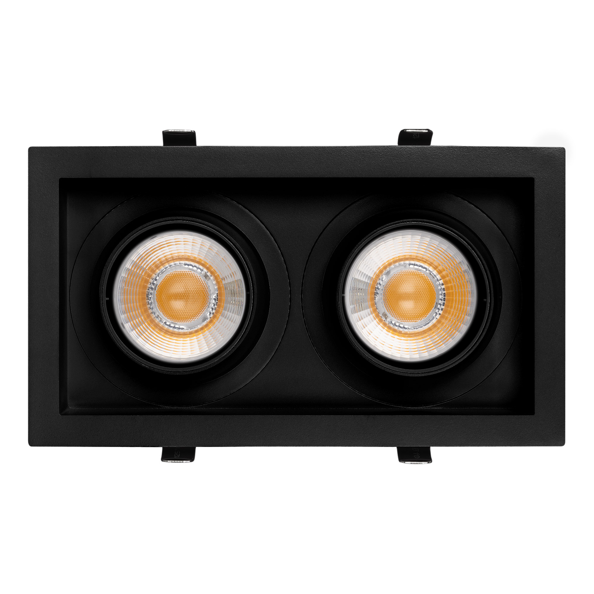 Поставка под заказ от 24 шт. Встраиваемый карданный светильник. Мощность 2х30 Вт, св. поток 6520 лм, 108 лм/Вт, дневной 4000 K, CRI>92, угол 30°, напряжение питания 230 В. Чёрный корпус из алюминия, черная вставка, степень защиты IP20. Размер: длина 250 мм, ширина 140 мм, высота 125 мм. Монтаж встраиваемый, установочное отверстие: длина 230 мм, ширина 120 мм. Драйвер 24-42 В, 750 мА, пульсация <2%.