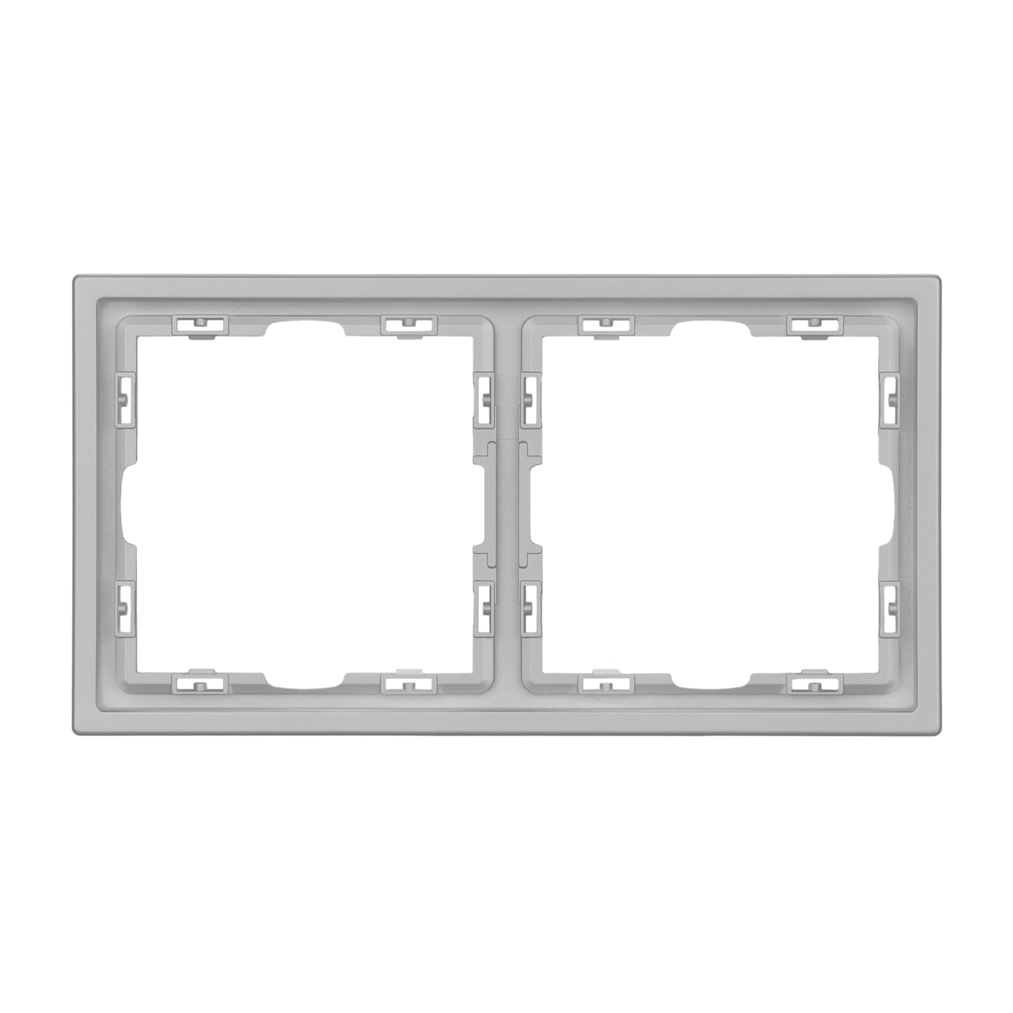 Рамка пластиковая на 2 поста, под встраиваемый механизм. Цвет - никель, с Soft-Touch поверхностью. Среднего уровня герметичности IP20. Ориентация монтажа горизонтальная. Габаритные размеры: длина 152 мм, ширина 81 мм, высота 8,55 мм. Гарантийный срок 12 мес.