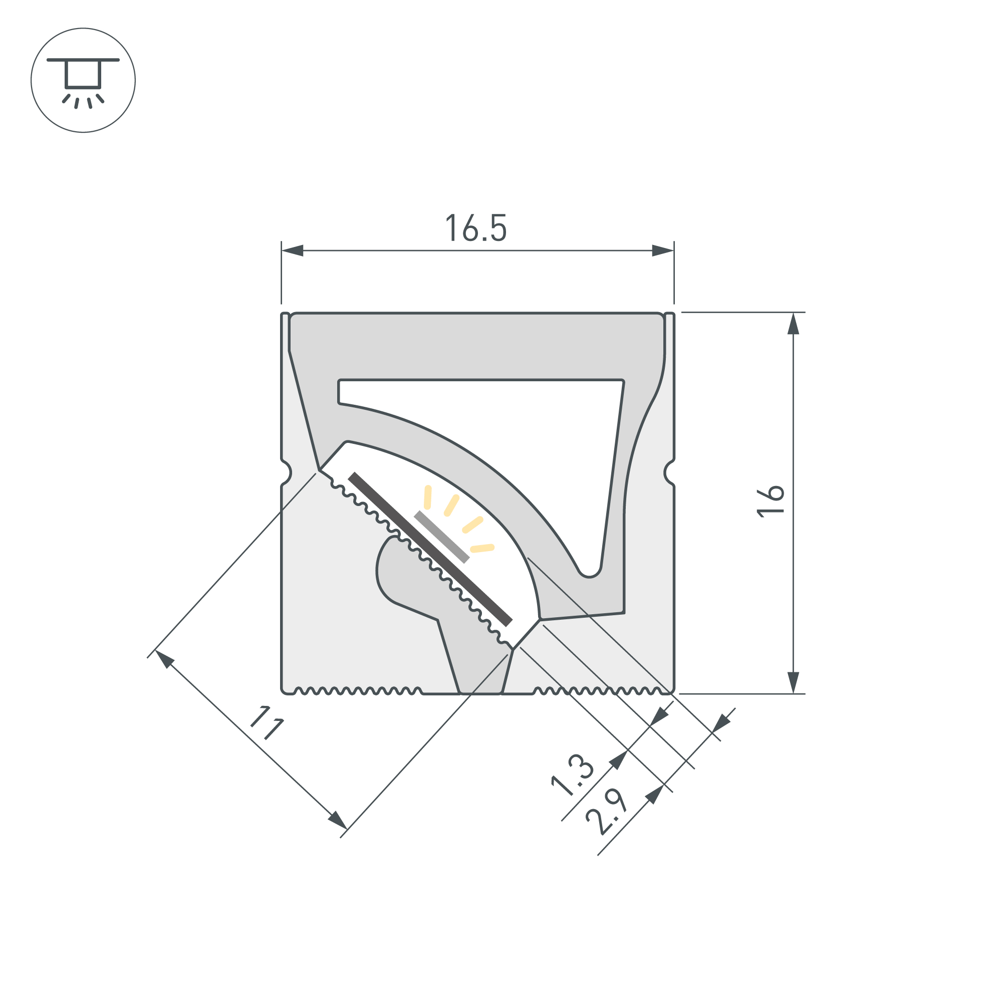 Цельнолитой силиконовый гибкий профиль белого цвета с УФ-защитой. Габаритные размеры профиля составляют 10000 мм в длину, 16 мм в ширину и 16 мм в высоту. Возможен изгиб как в вертикальной, так и в горизонтальной плоскости, а также изготовление скрученных форм TWIST. Вертикальный изгиб TOP, минимальный радиус изгиба 50 мм. Горизонтальный изгиб SIDE, минимальный радиус изгиба 200 мм. Угол излучения 115°. Для удобства установки ленты по всей длине профиля протянута нить. Площадка для установки светодиодных лент позволяет использовать ленту шириной 10 мм, высотой до 2,8 мм и мощностью до 10 Вт/м. Это обеспечивает гибкость в выборе светодиодных лент и создает потрясающие световые решения. Для установки во влажных помещениях необходима герметизация при помощи двухкомпонентного эпоксидного герметика. Класс пылевлагозащиты – IP65 (при соблюдении технологии герметизации). Этот продукт представляет отличное решение для создания современных световых проектов и обеспечивает надежную и стильную основу для установки светодиодов.