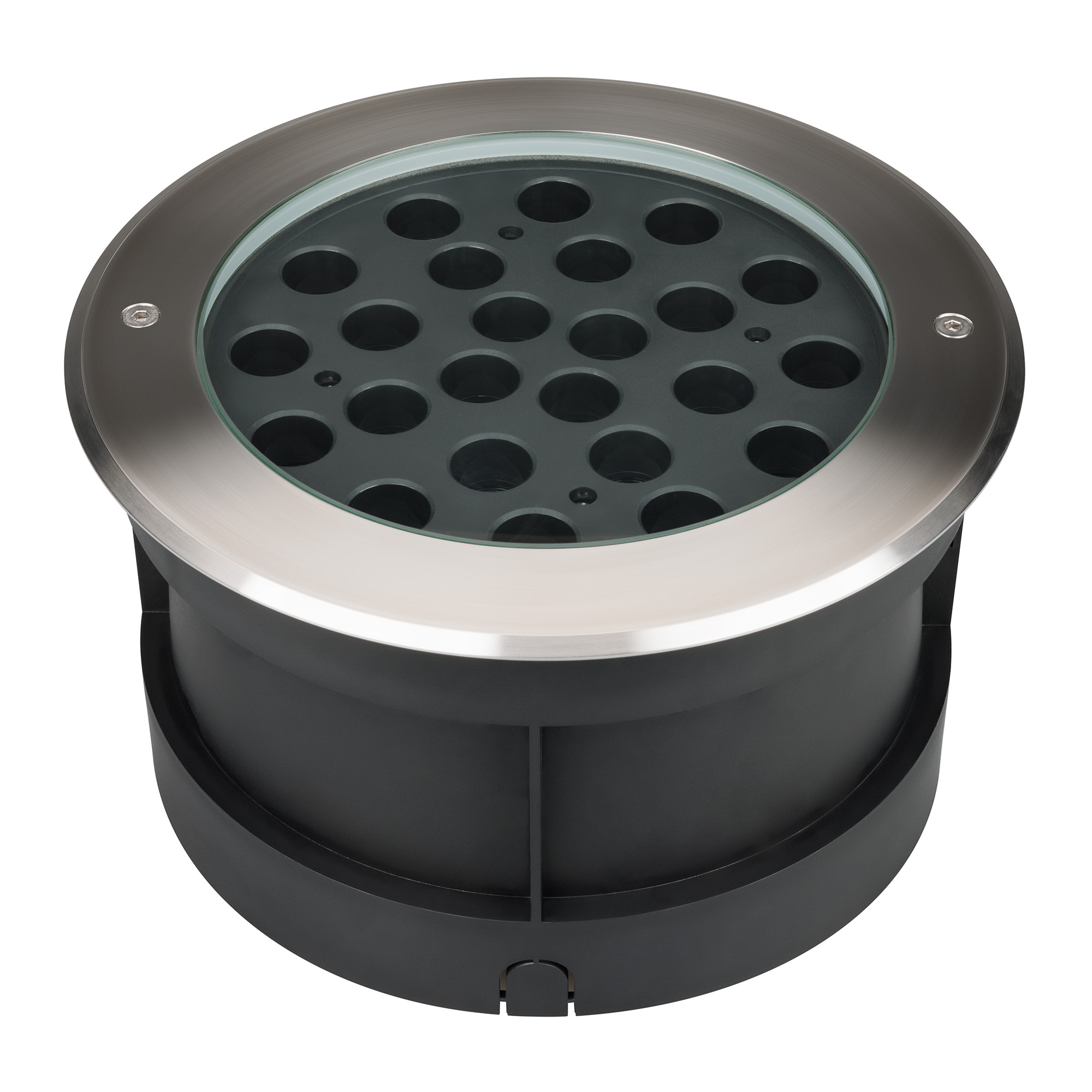 Встраиваемый светодиодный светильник LTD-DAFNA мощностью 48 Вт, дневного цвета свечения (4000К), со световым потоком 3250 лм предназначен для ландшафтного освещения парковых и садовых дорожек, придомовых территорий, а также декоративной подсветки фасада. Угол излучения 45° позволяет создать акцент на подсвечиваемом объекте. Ударопрочный круглый корпус из нержавеющей стали и алюминия Ø260x150 мм и экран из закаленного стекла толщиной надежно защищают оптический блок со светодиодом от внешних воздействий. Степень пылевлагозащиты корпуса на уровне IP67 рассчитана на длительное использование на открытом воздухе, а так же обеспечивает надежную работу в неблагоприятных условиях. Установка в отверстие ДxВ Ø240x150 мм. Светильник поставляется в сборе с драйвером и питающим кабелем, что позволяет легко и быстро подключить его к сети 230 В.
