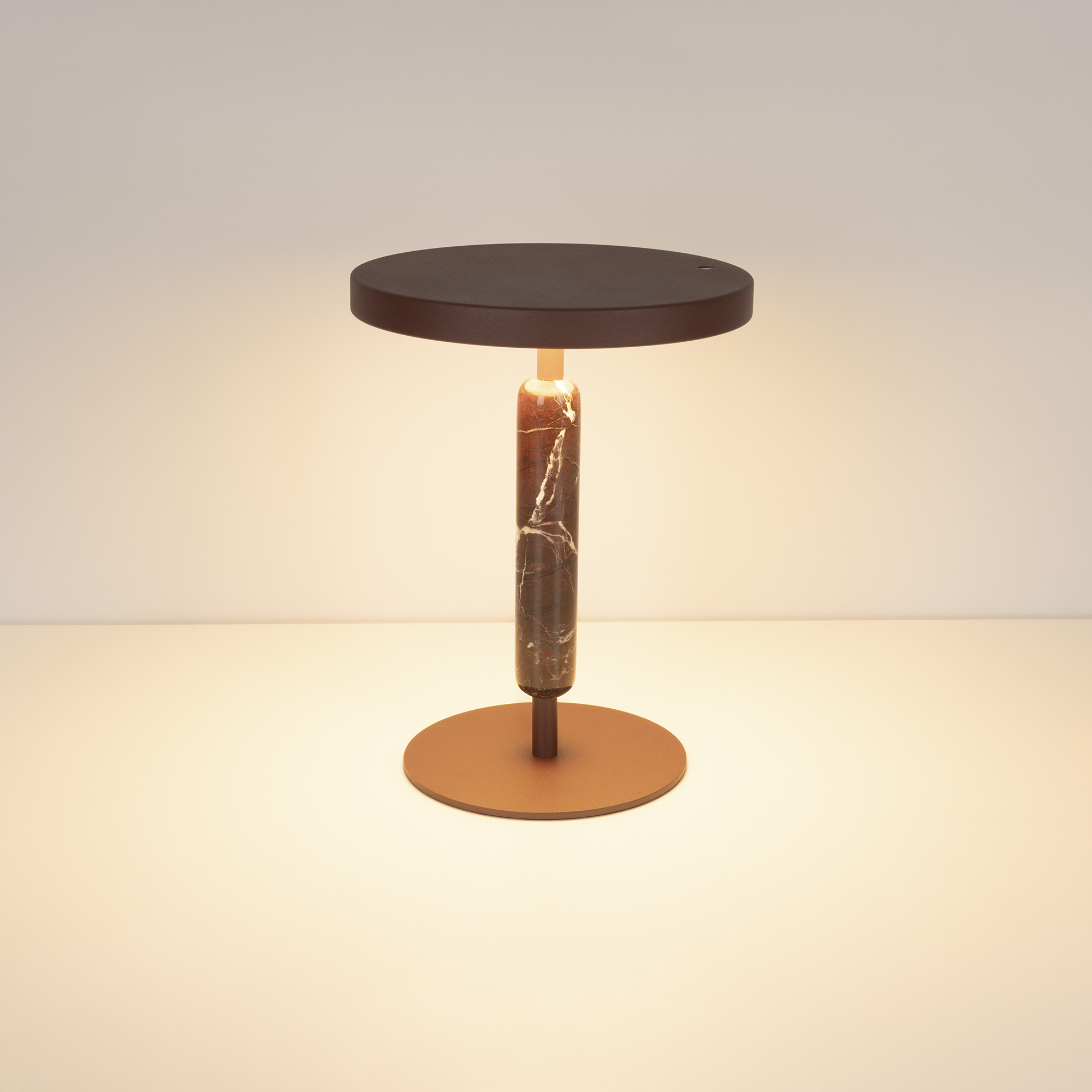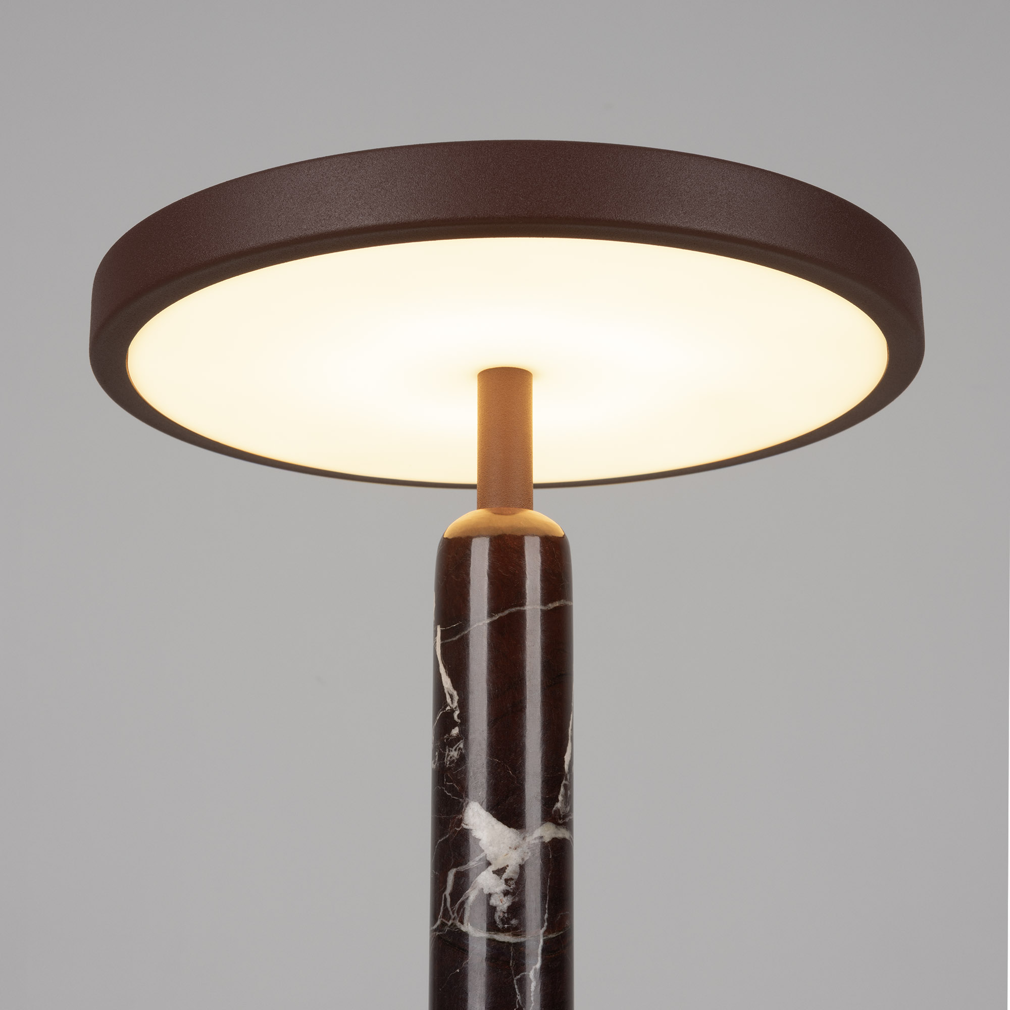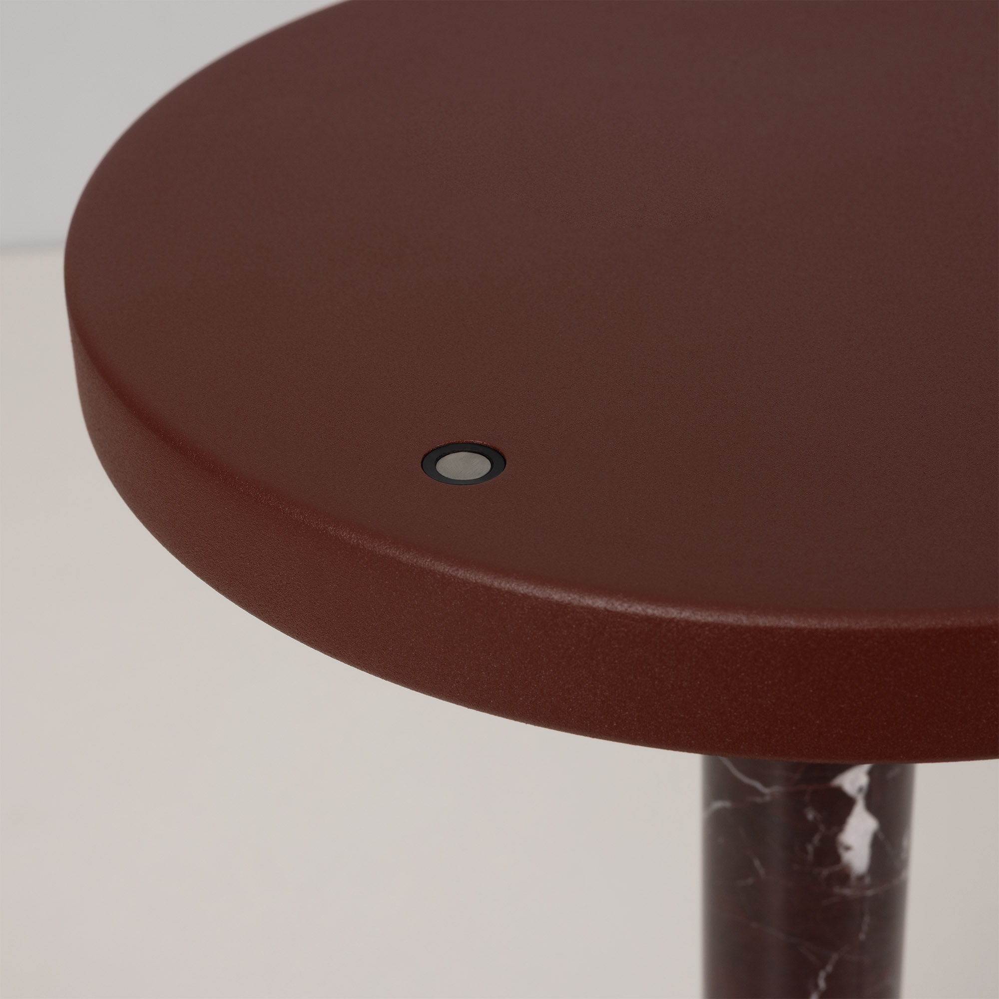 Настольный светильник ALYSS. С изменяемой цветовой температурой 2700/3200/4000К. Цт переключается коротким нажатием на сенсорную кнопку на плафоне, диммирование происходит за счет ее удержания. Мощность 5 Вт, св. поток 195 лм, 39 лм/Вт, CRI>92, угол 110°, напряжение питания 230 В. Корпус из алюминия цвета бургунди, декоративная вставка из мрамора, степень защиты IP20. Размер: диаметр 225 мм, высота 300 мм. Пульсация <1%.