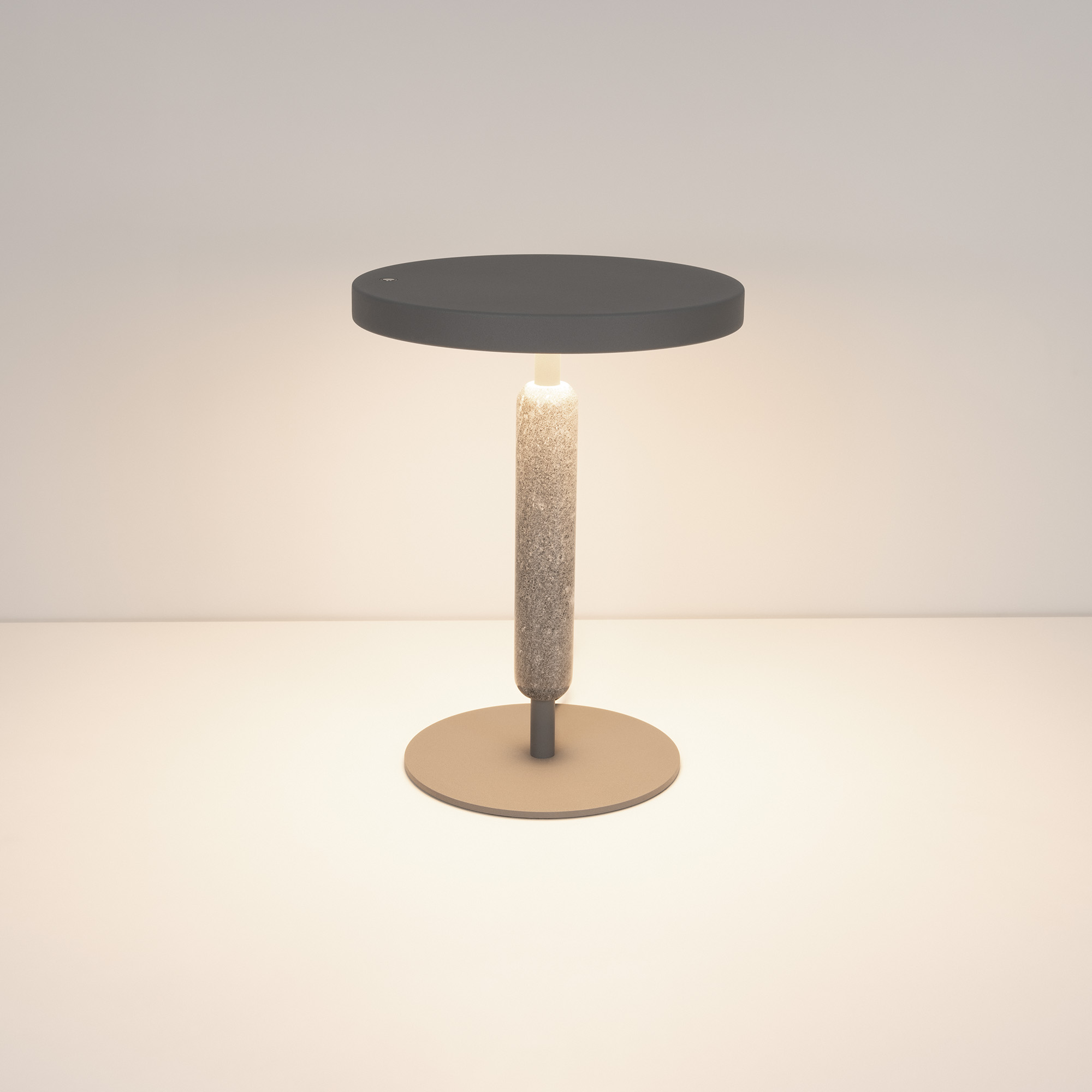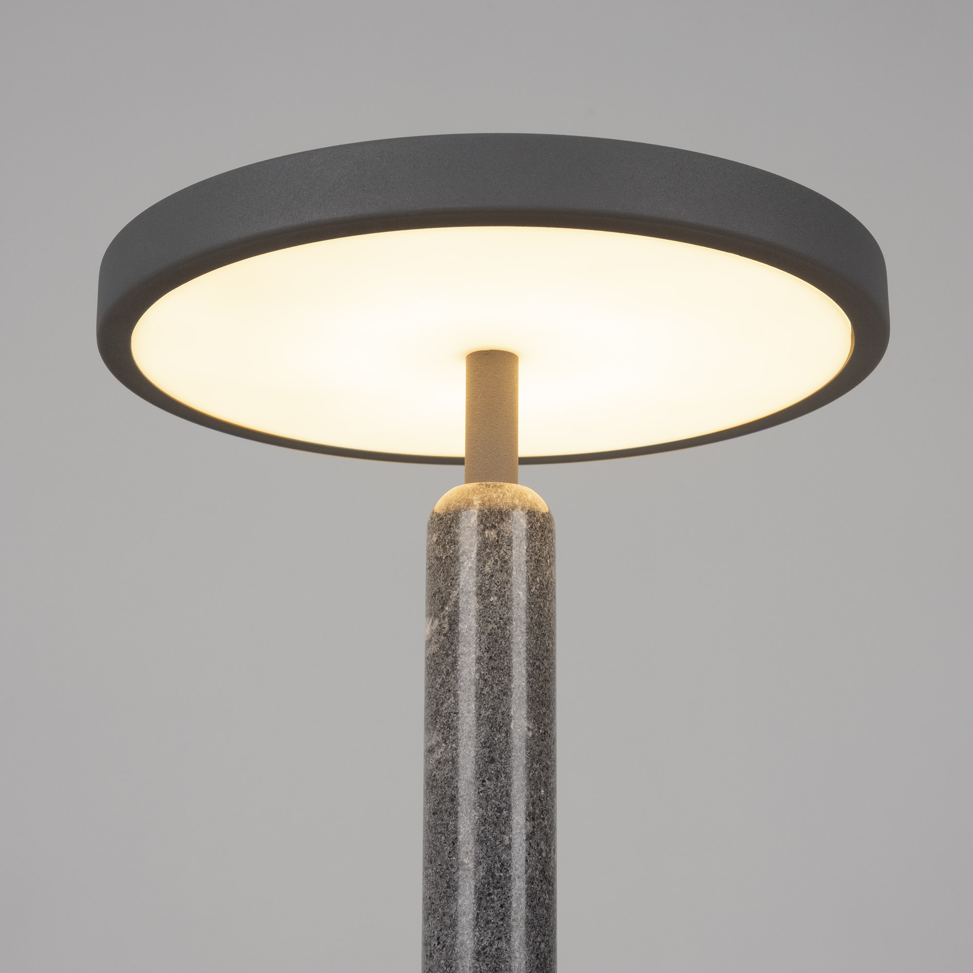 Настольный светильник ALYSS. С изменяемой цветовой температурой 2700/3200/4000К. Цт переключается коротким нажатием на сенсорную кнопку на плафоне, диммирование происходит за счет ее удержания. Мощность 5 Вт, св. поток 195 лм, 39 лм/Вт, CRI>92, угол 110°, напряжение питания 230 В. Темно-серый корпус из алюминия, декоративная вставка из мрамора, степень защиты IP20. Размер: диаметр 225 мм, высота 300 мм. Пульсация <1%.