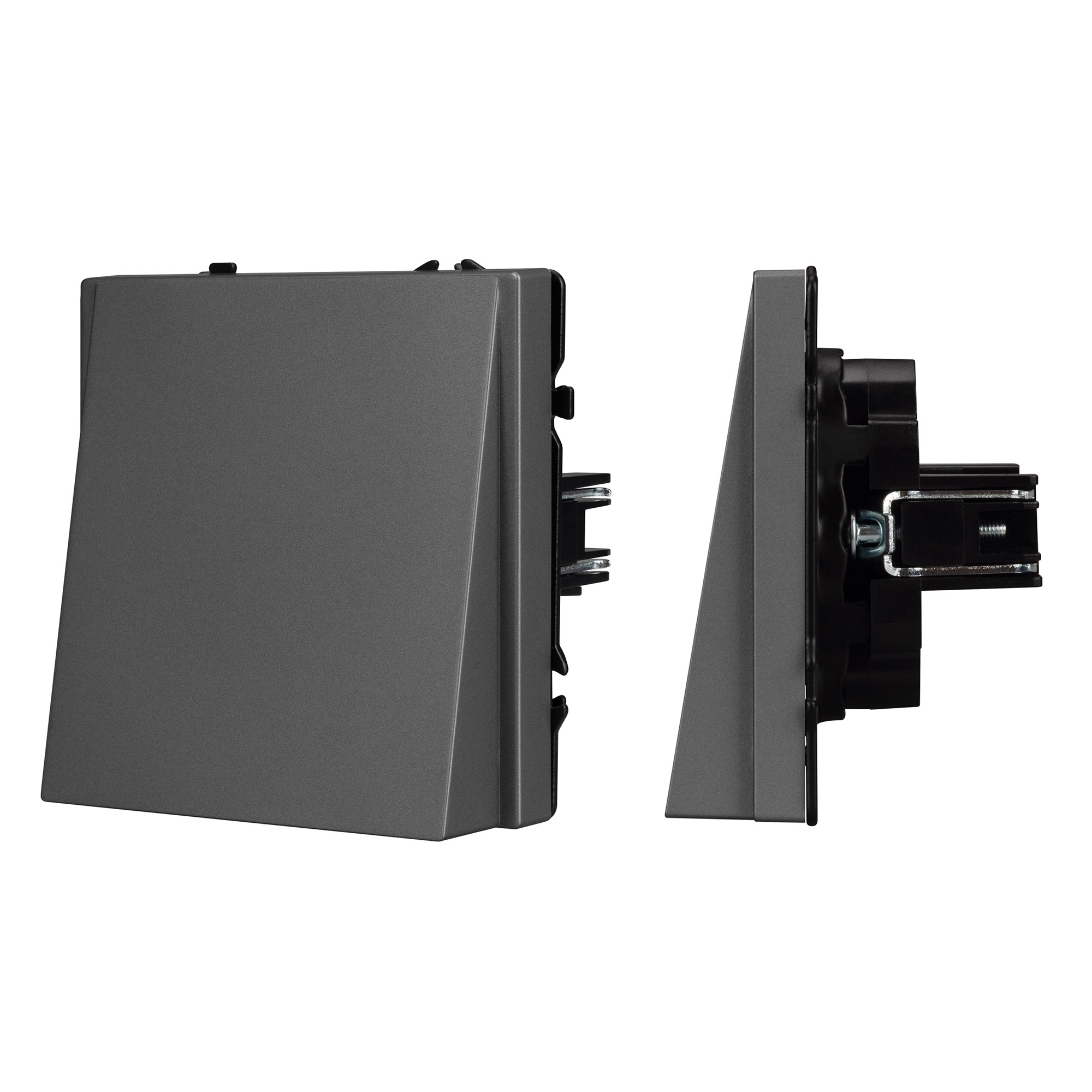 Строгие геометрические линии гармонично сочетаются с функциональностью продуманных механизмов, создавая идеальное решение для дизайн-проектов, где важны как эстетика, так и практичность. Механизм вывода кабеля совместим с рамками серии NOBE, создает утонченный минималистичный вид. Скрытый тип монтажа позволяет гармонично встроить в интерьер любого современного дизайн-проекта. Видимая часть механизма выполнена из высококачественного пластика цвета серый базальт и имеет Soft-Touch покрытие, что придает изделию приятные тактильные ощущения и стильный внешний вид. Выводной кабель фиксируется винтовым зажимом, расположенным на тыльной стороне механизма. А усиленные распорные лапки двойного захвата надежно фиксируют механизм в установочном подрозетнике круглого сечения диаметром 60мм. Суппорт окрашен в черный матовый цвет под основу механизма и выполнен из металла толщиной 1,5мм, что обеспечивает безопасность и уверенность в установке. На каждой стороне суппорта размещены фиксирующие элементы, позволяющие комбинировать механизмы в системы до 5шт как горизонтально, так и вертикально.
