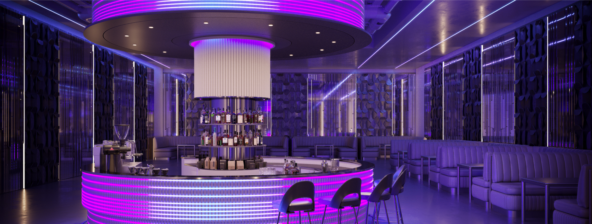 Оформление рекламных вывесок и витрин, создание подсветки в ресторанах, клубах и театрализованных шоу, а также изготовление медиафасадов.