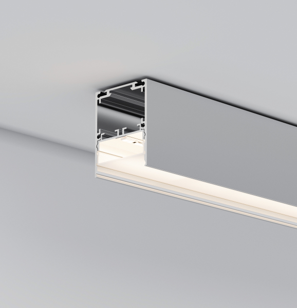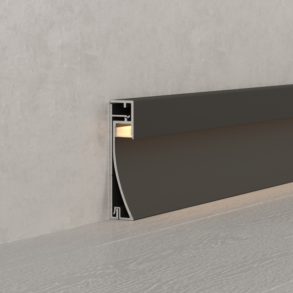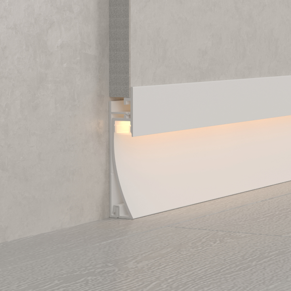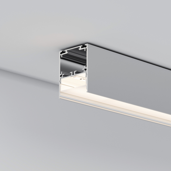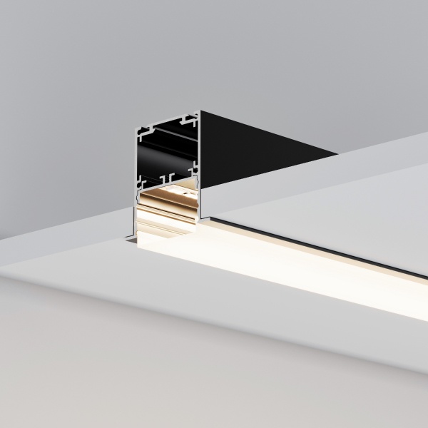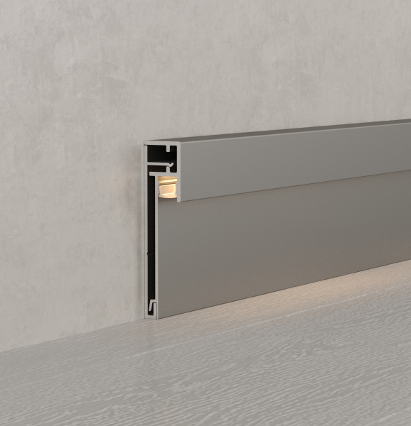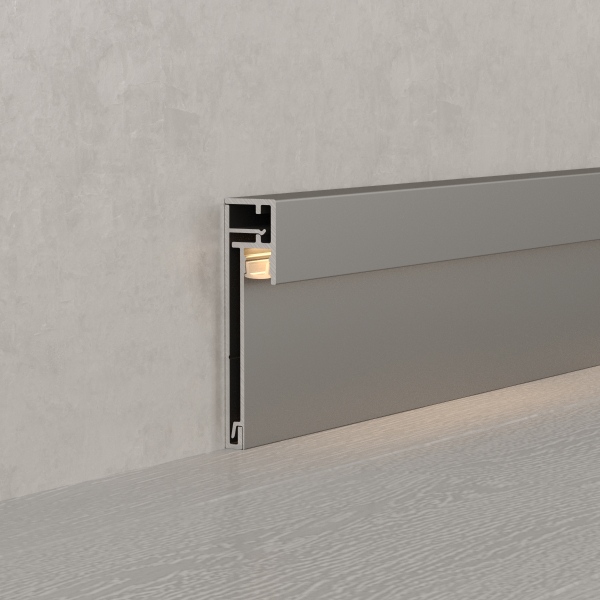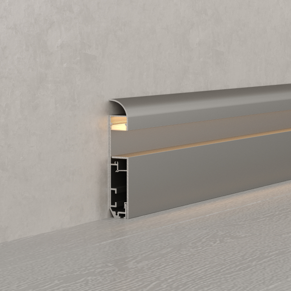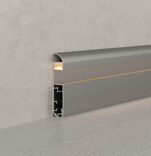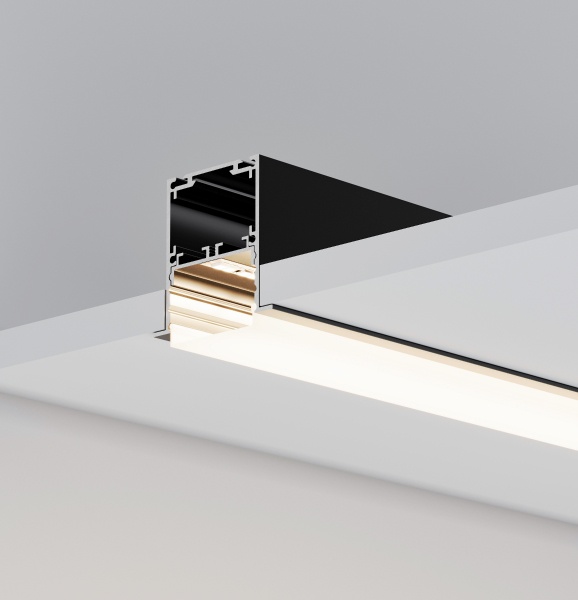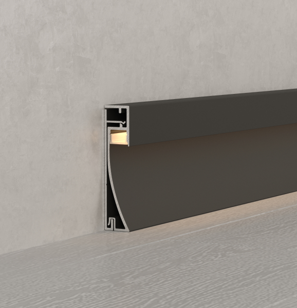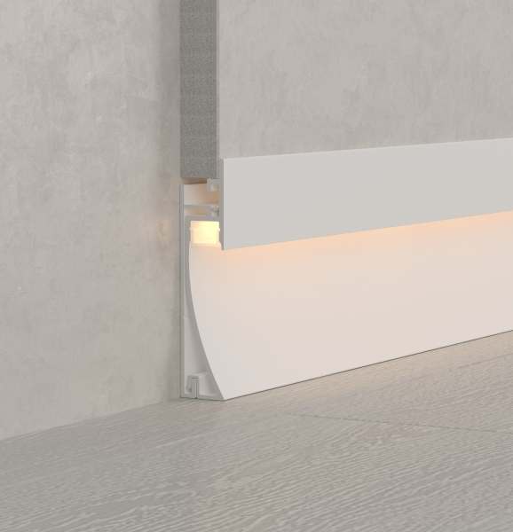 Среди новинок — накладные двухкомпонентные профили-плинтусы, а также встраиваемые модели с накладным фланцем. Различные варианты расположения площадки для ленты позволяют подобрать подходящий световой эффект.