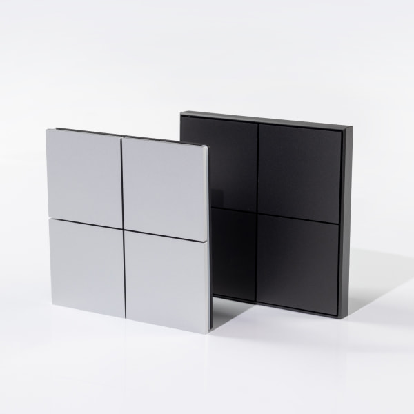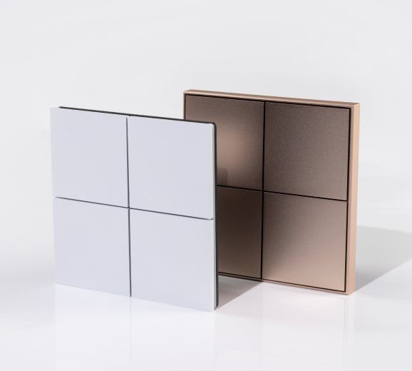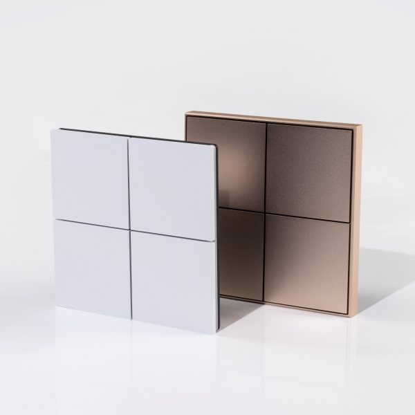 Среди новинок представлены кнопочные и сенсорные панели различных цветов с четырьмя клавишами и светодиодной индикацией. Сенсорные модели выполнены в безрамочном корпусе, в то время как кнопочные панели могут быть как в безрамочном исполнении, так и c тонкой рамкой по периметру.