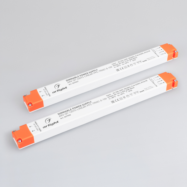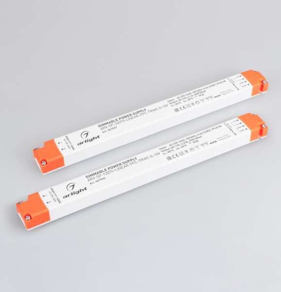 Еще одна новинка серии ARV SP — источники напряжения, которые позволяют регулировать яркость светодиодных лент с помощью стандартных протоколов TRIAC и 0/1-10 В, обеспечивающих легкое управление. Также устройства обладают тонким удлиненным корпусом, который легко разместить внутри линейного светильника или в узкой нише.