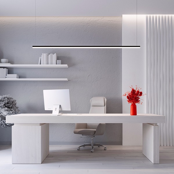 Алюминиевый корпус светильника может быть высотой 400 или 600 мм. Максимальная длина регулируемого подвеса составляет 2000 мм.
