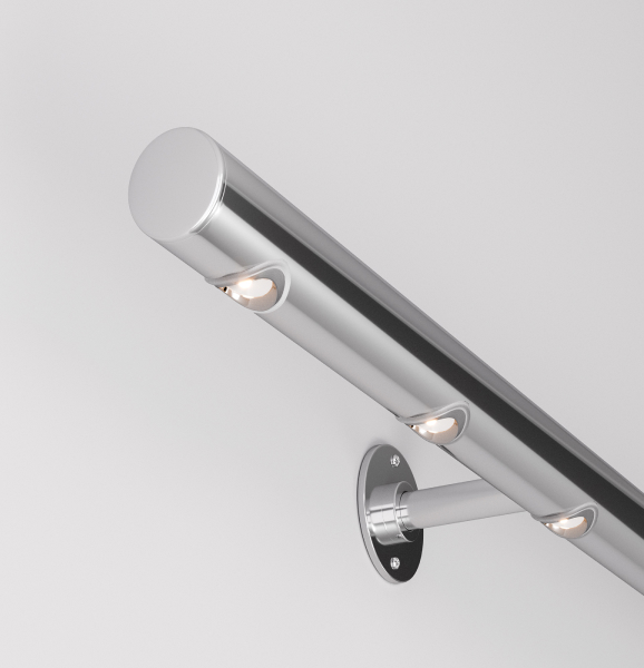 Светильник с углом излучения 70° или 30×60° позволяет организовать функциональное освещение лестничных маршей, балконов, террас и архитектурных элементов, где используются ограждения и поручни.