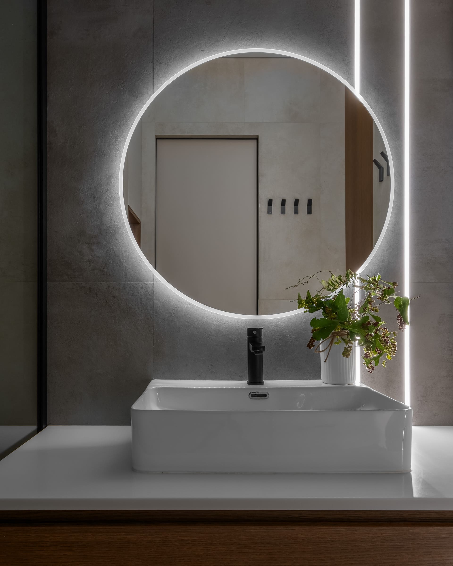 Наконец, в ванной комнате также активно используются линии света. Созданные на основе герметичных лент, дополнительные источники света работают стабильно даже в условиях высокой влажности.