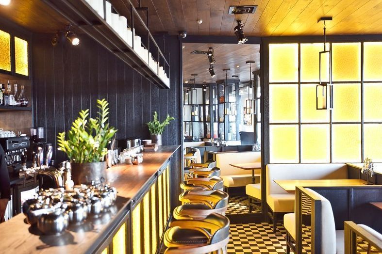 Декоративная и акцентная подсветка бара-ресторана "Solnce" («Солнце») на проспекте Добролюбова в Санкт-Петербурге. В подсветке интерьера использовалось светодиодное оборудование торговой марки arlight®.