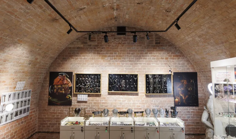Освещение всего пространства музея выполнено в едином стиле. Черные треки серии LGD гармонично сочетаются с металлическими решетками, словно становясь их продолжением. Конструкции из треков установлены на подвесах, что является отличным решением в помещениях со сводчатым потолком.