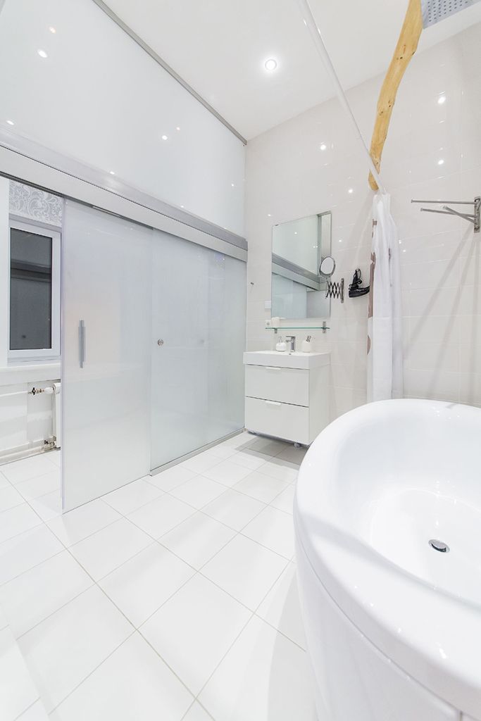 Из стекла с изменяемой прозрачностью были сделаны и стенки ванной комнаты, а в её освещении были применены светодиодные светильники arlight®.