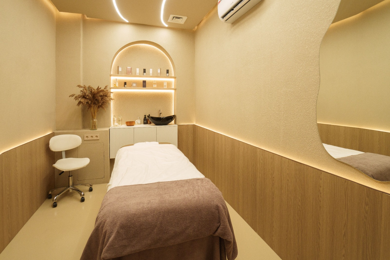 Освещение в салоне должно быть достаточно ярким для работы, но при этом мягким, чтобы не утомлять глаза. Добиться такого баланса позволяет сочетание: