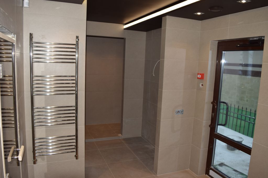 Отдельно отметим сауну. Она является зоной с высокой влажностью и температурой, поэтому к безопасности и надёжности применяемых в ней источников света предъявляются повышенные требования. Светильником в сауне служит светодиодная панель, обрамлённая деревянной рамкой. А подсветка была установлена под лавки верхнего уровня. Для этого была использована герметичная светодиодная лента arlight®t с тёплым белым свечением, соответствующим данному помещению. В предбаннике и зоне джакузи освещение выполнено на основе точечных встраиваемых светильников и "линий света". Эффект неразрывных световых линий достигается путём использования светодиодной ленты, установленной в алюминиевый профиль с матовым экраном. В душевой зоне смонтирован светящийся потолок, сделанный из матового светопропускающего оргстекла и скрытой за ним светодиодной ленты. Таким образом достигается эффект светящейся поверхности потолка.
