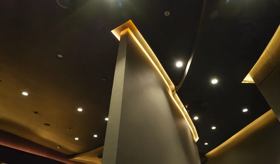 • Заливающая светодиодная подсветка по периметру зала создает равномерное основное освещение.